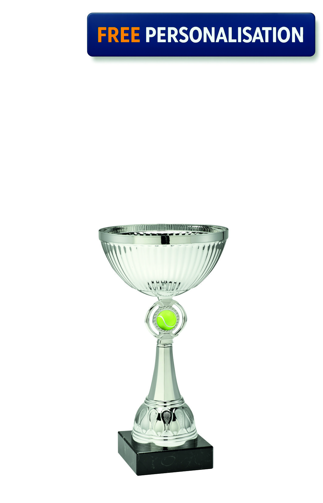 16.5cm SILVER CUP TENNIS AWARD with domed resin. TENNIS logo, excellent quality award Packaged and delivered in 2-3 working days.