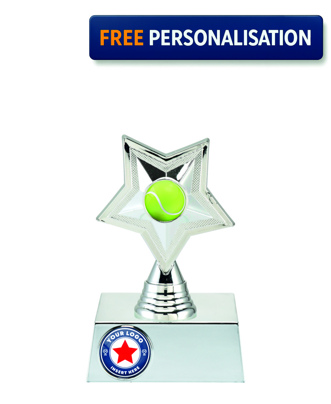 16cm SILVER STAR SHINE HOLDER TENNIS AWARD with domed resin. TENNIS logo, excellent quality award Packaged and delivered in 2-3 working days.