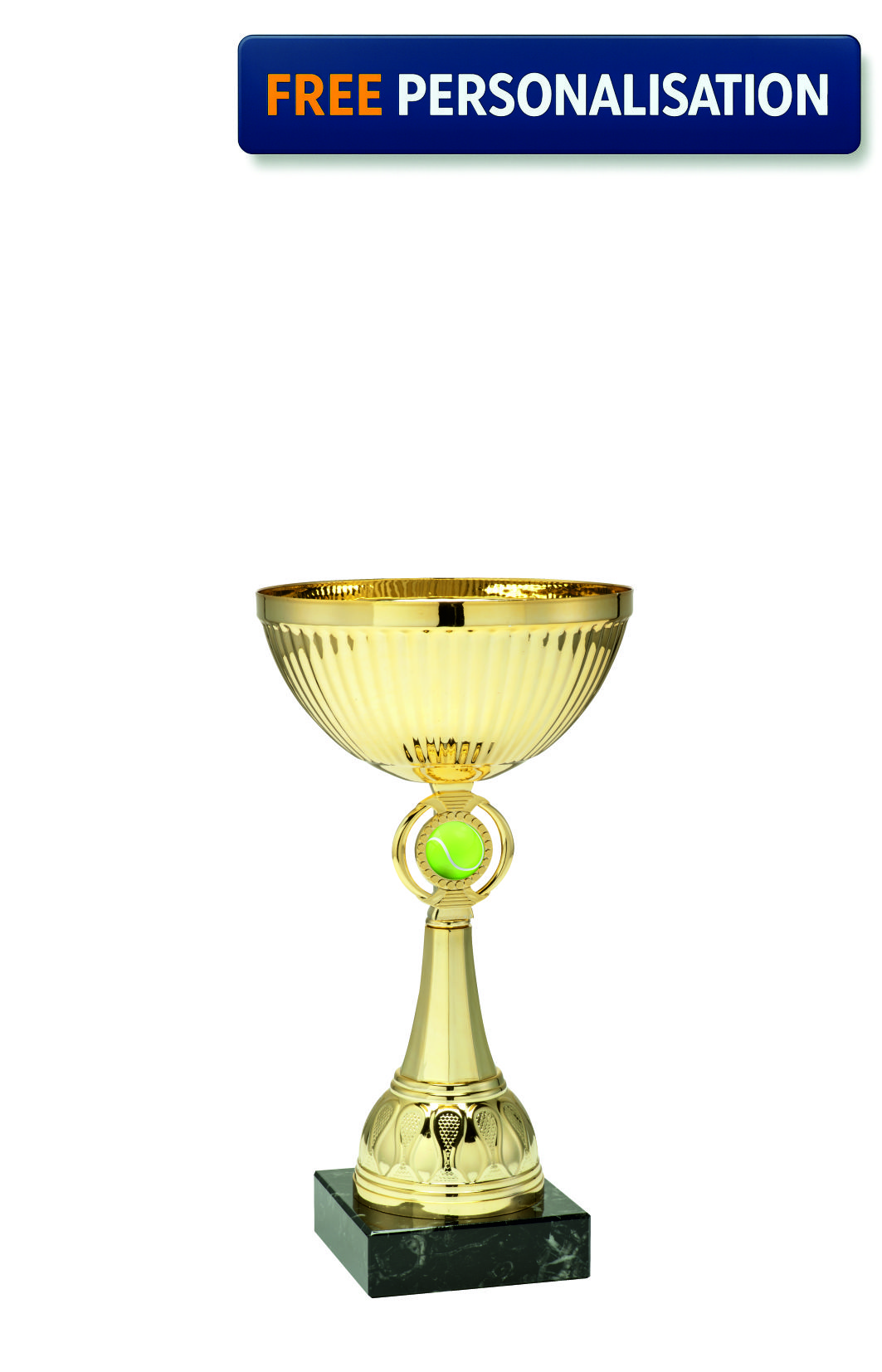 18cm GOLD CUP TENNIS AWARD with domed resin. TENNIS logo, excellent quality award Packaged and delivered in 2-3 working days.