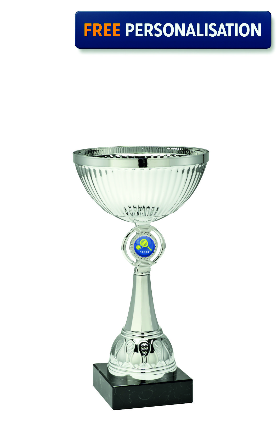 24.5cm SILVER CUP PADEL AWARD. PADEL logo, excellent quality award Packaged and delivered in 2-3 working days.