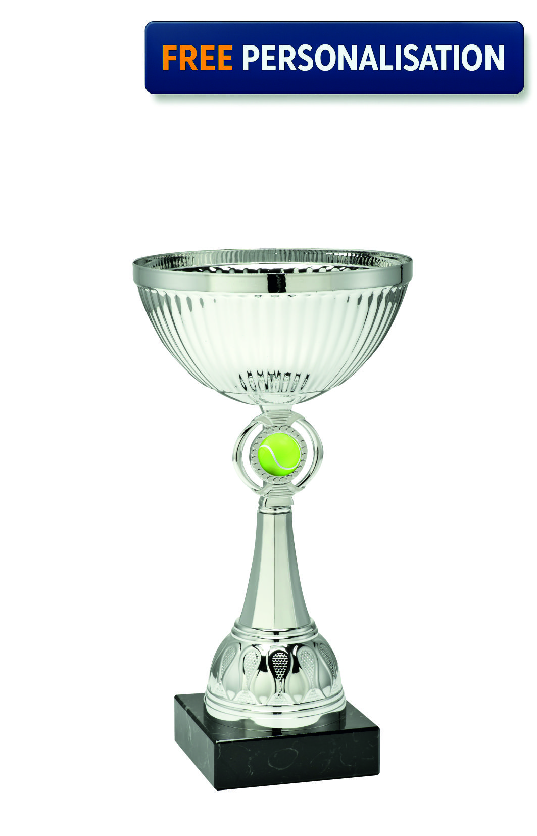 27cm SILVER CUP TENNIS AWARD with domed resin. TENNIS logo, excellent quality award Packaged and delivered in 2-3 working days.