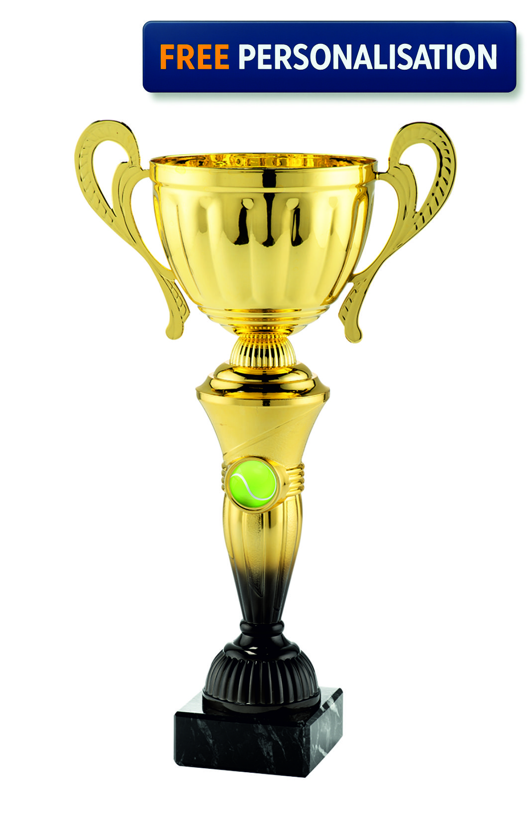 38cm GOLD & BLACK CUP TENNIS AWARD. TENNIS logo, excellent quality award Packaged and delivered in 2-3 working days.