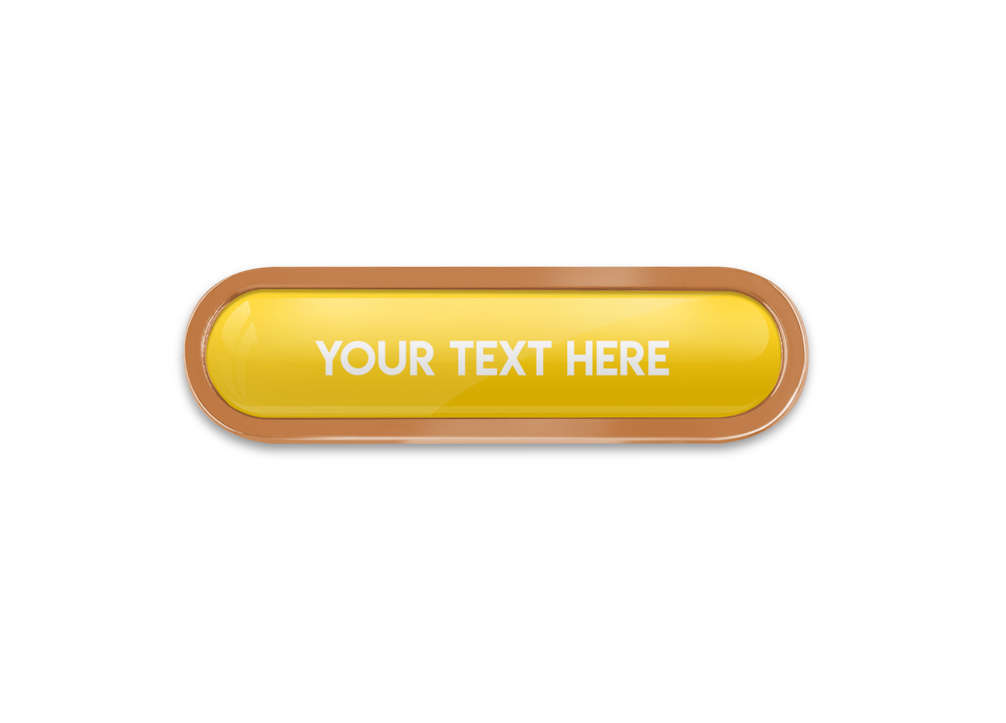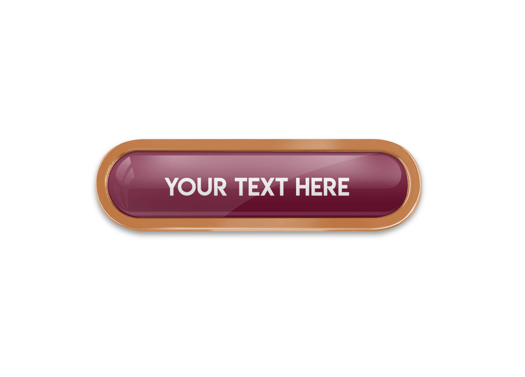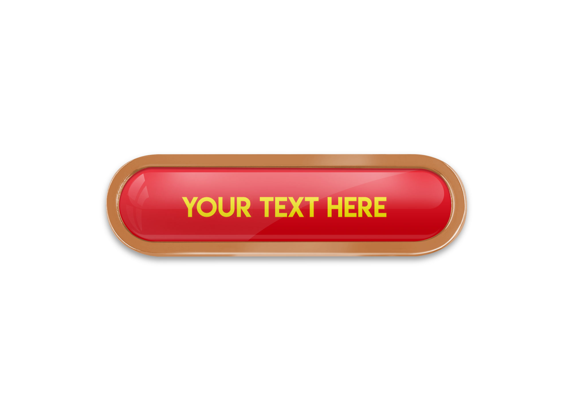 Bronze Bespoke Your Text Metal Bar Badge (45mm). Made from high quality metal, this eye catching bar badge design can be used for any School appraisal purposes. No origination cost and there is only a minimum order of 10 badges required. Comes with a domed resin finish. Butterfly Pin on reverse.