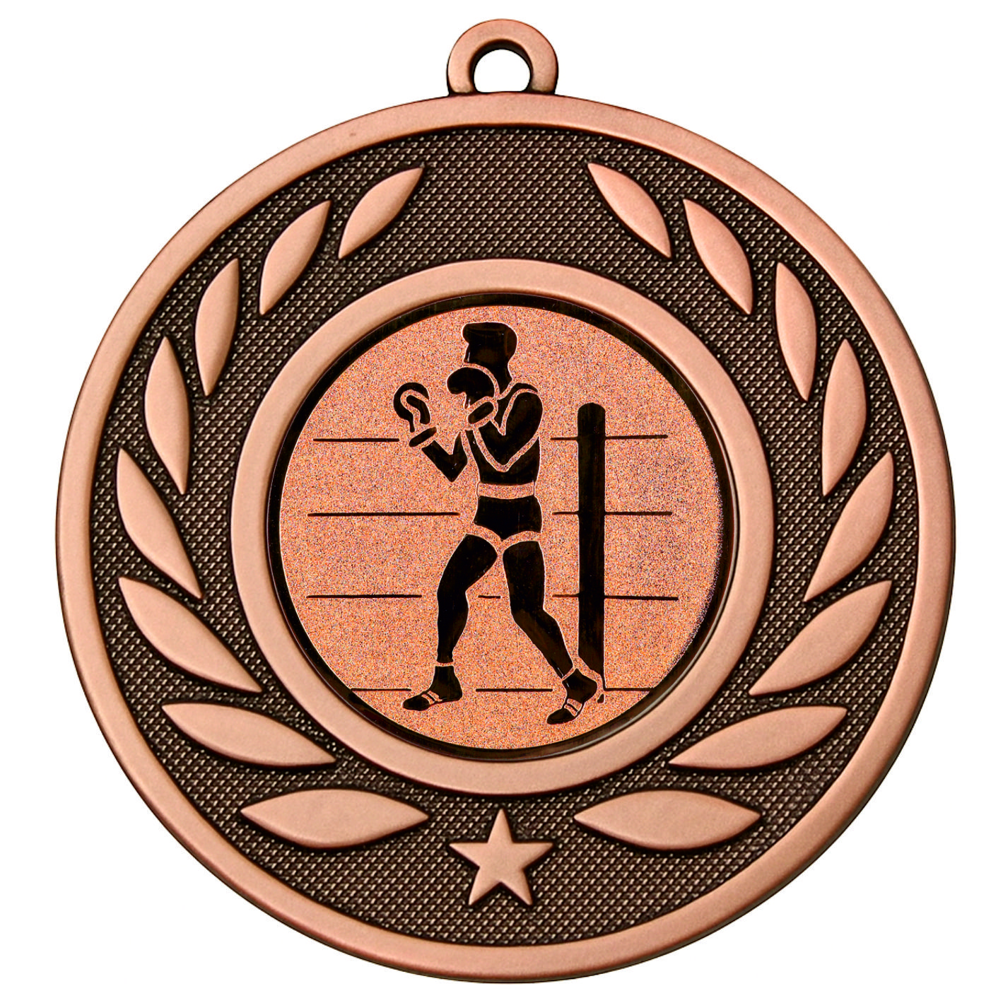Bronze Laurel Boxing Medal - FREE Ribbon - BIE.M9459.03 - This 50mm Metal cast Medal includes a free Boxing logo and free premium quality ribbon.