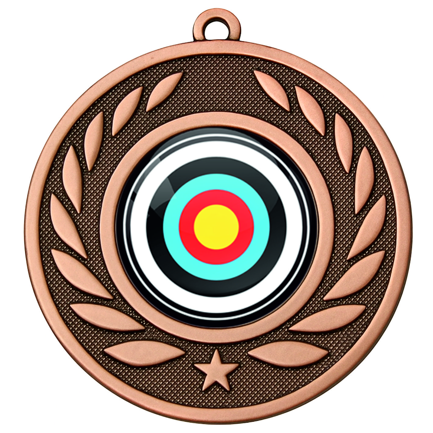 Bronze Laurel Colour Archery Medal - FREE Ribbon - BIE.M9459.03 - This 50mm Metal cast Medal includes a free Archery logo and free premium quality ribbon. Let archers remember your event by giving them a medal commemorating the occasion