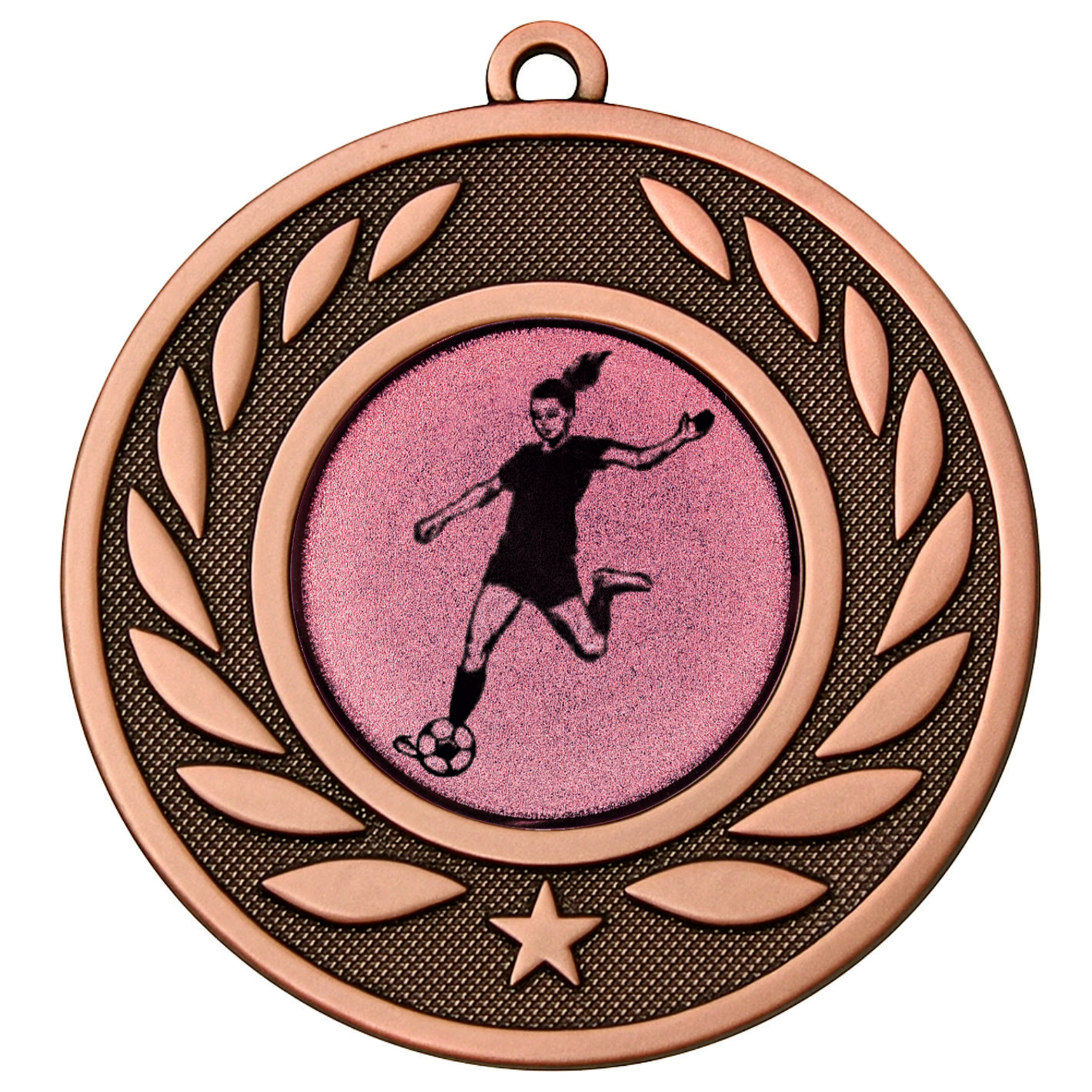 Bronze Laurel Female Football Medal - FREE Ribbon - BIE.M9459.03 - This 50mm Metal cast Medal includes a free Female Football logo and free premium quality ribbon.