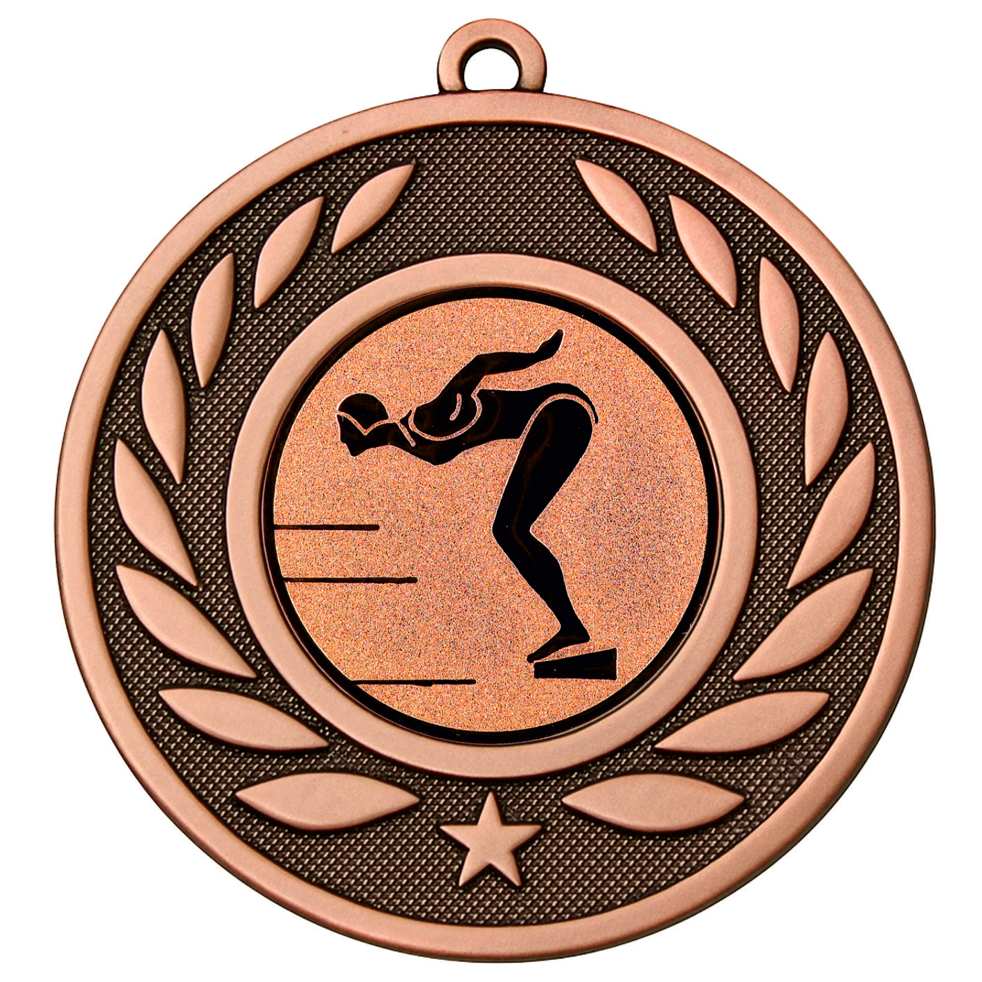 Bronze Laurel Female Swimming Medal-FREE Ribbon-M9459.03- This 50mm Metal cast Medal includes a free Female Swimming logo and free premium quality ribbon.