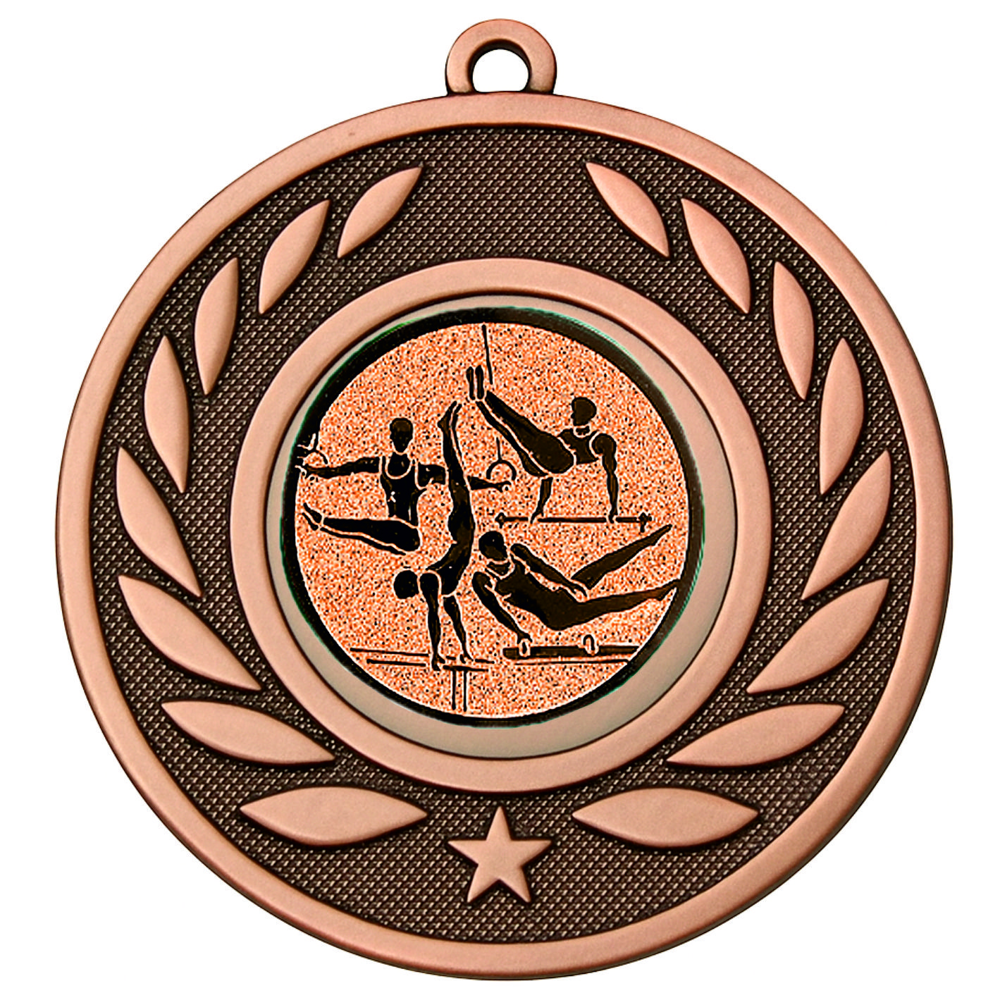 Bronze Laurel Male Gymnast Medal - FREE Ribbon - BIE.M9459.03 - This 50mm Metal cast Medal includes a free Male Gymnast logo and free premium quality ribbon.