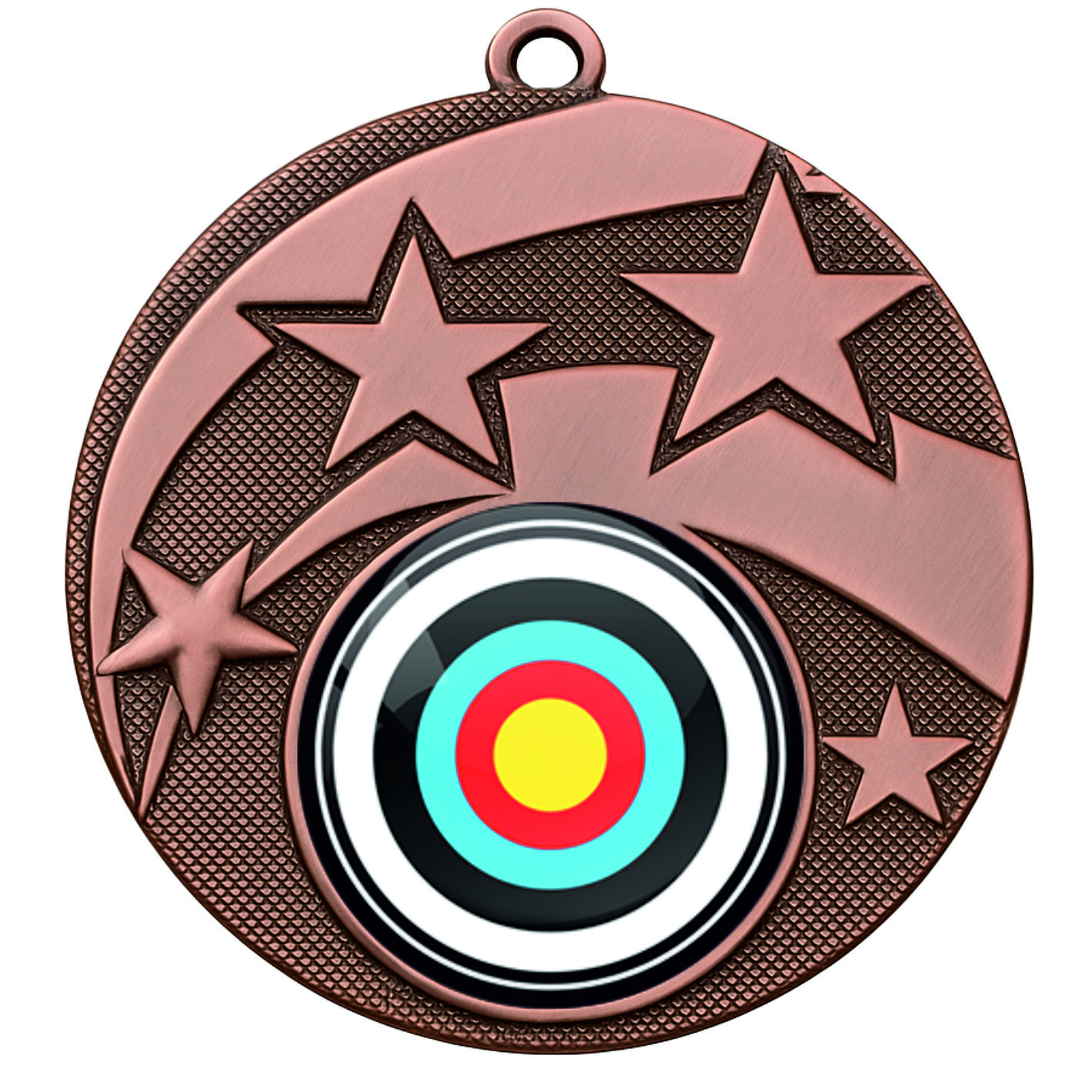 Bronze Star Colour Archery Medal - FREE Ribbon - BIE.M9457.03 - This 50mm Metal cast Medal includes a free Archery logo and free premium quality ribbon. Let archers remember your event by giving them a medal commemorating the occasion