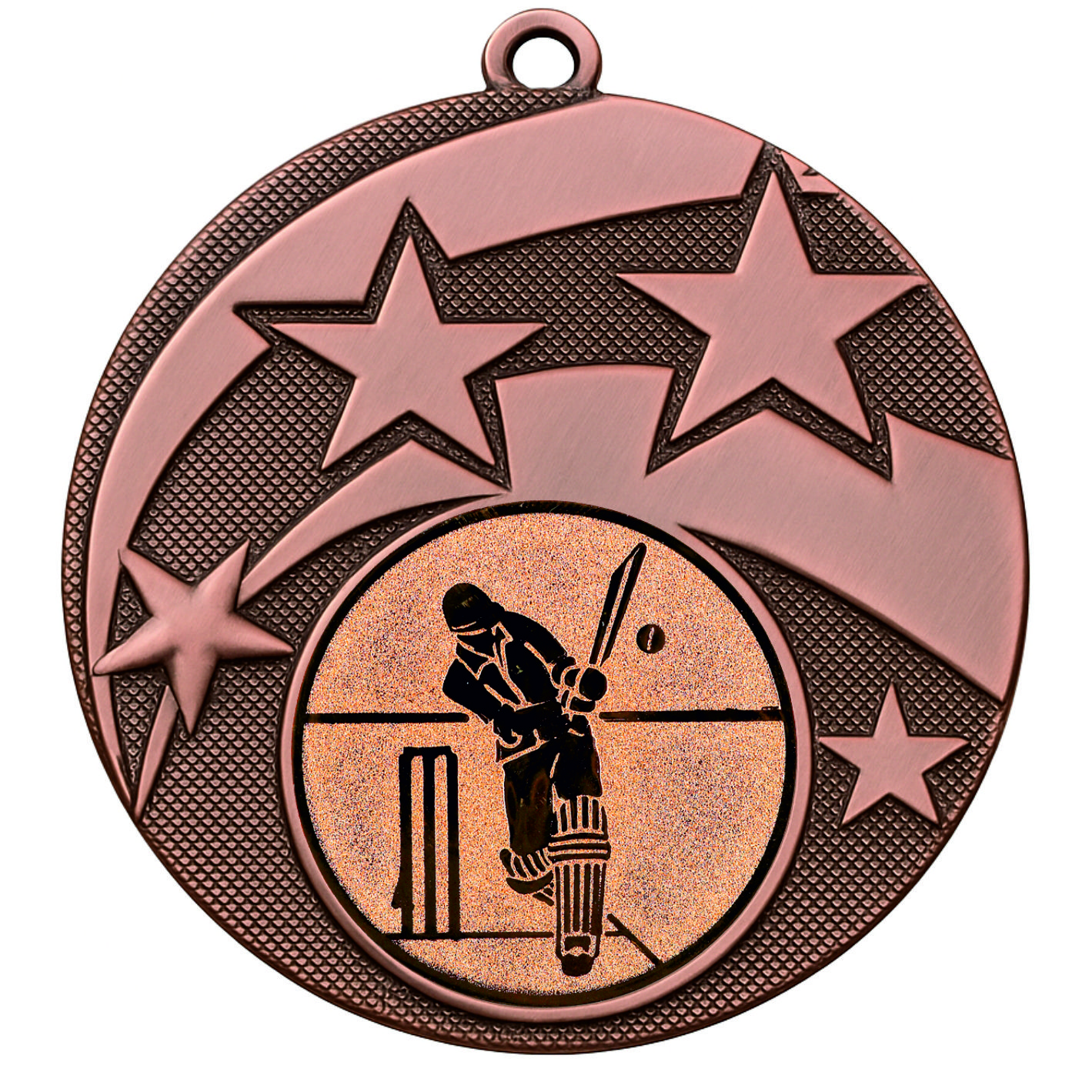 Bronze Star Cricket Medal - FREE Ribbon - BIE.M9457.03 - This 50mm Metal cast Medal includes a free Cricket logo and free premium quality ribbon.