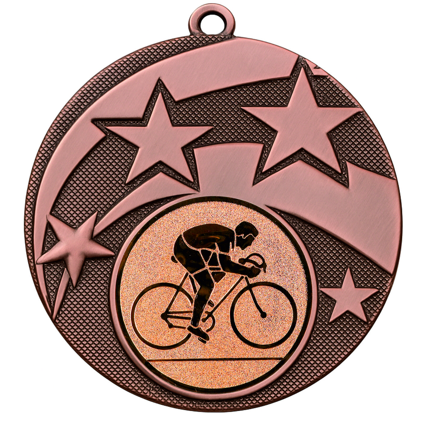 Bronze Star Cycling Medal - FREE Ribbon - BIE.M9457.03 - This 50mm Metal cast Medal includes a free Cycling logo and free premium quality ribbon.