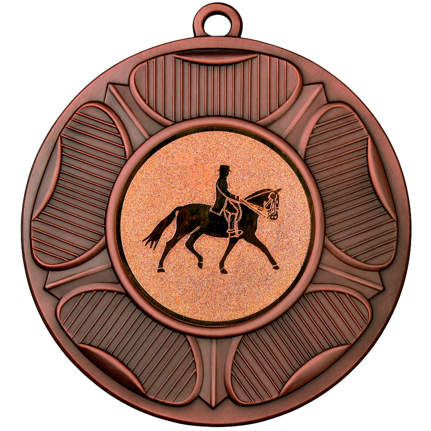 Bronze Tudor Rose Dressage Medal-FREE Ribbon - BIE.M9458.03- This 50mm Metal cast Medal includes a free Dressage logo and free premium quality ribbon.