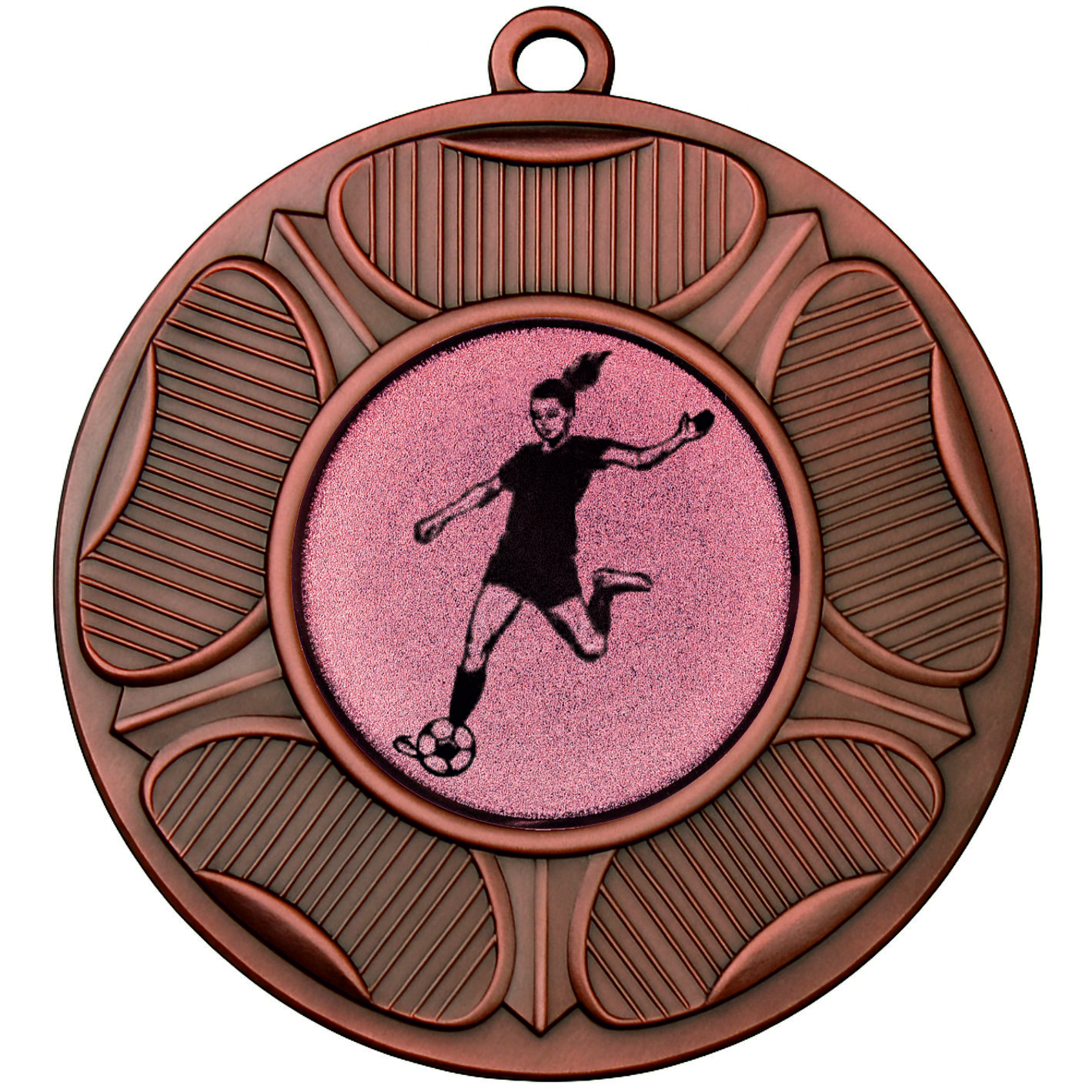 Bronze Tudor Rose Female Football Medal-FREE Ribbon - BIE.M9458.03 - This 50mm Metal cast Medal includes a free Female Football logo and free premium quality ribbon.
