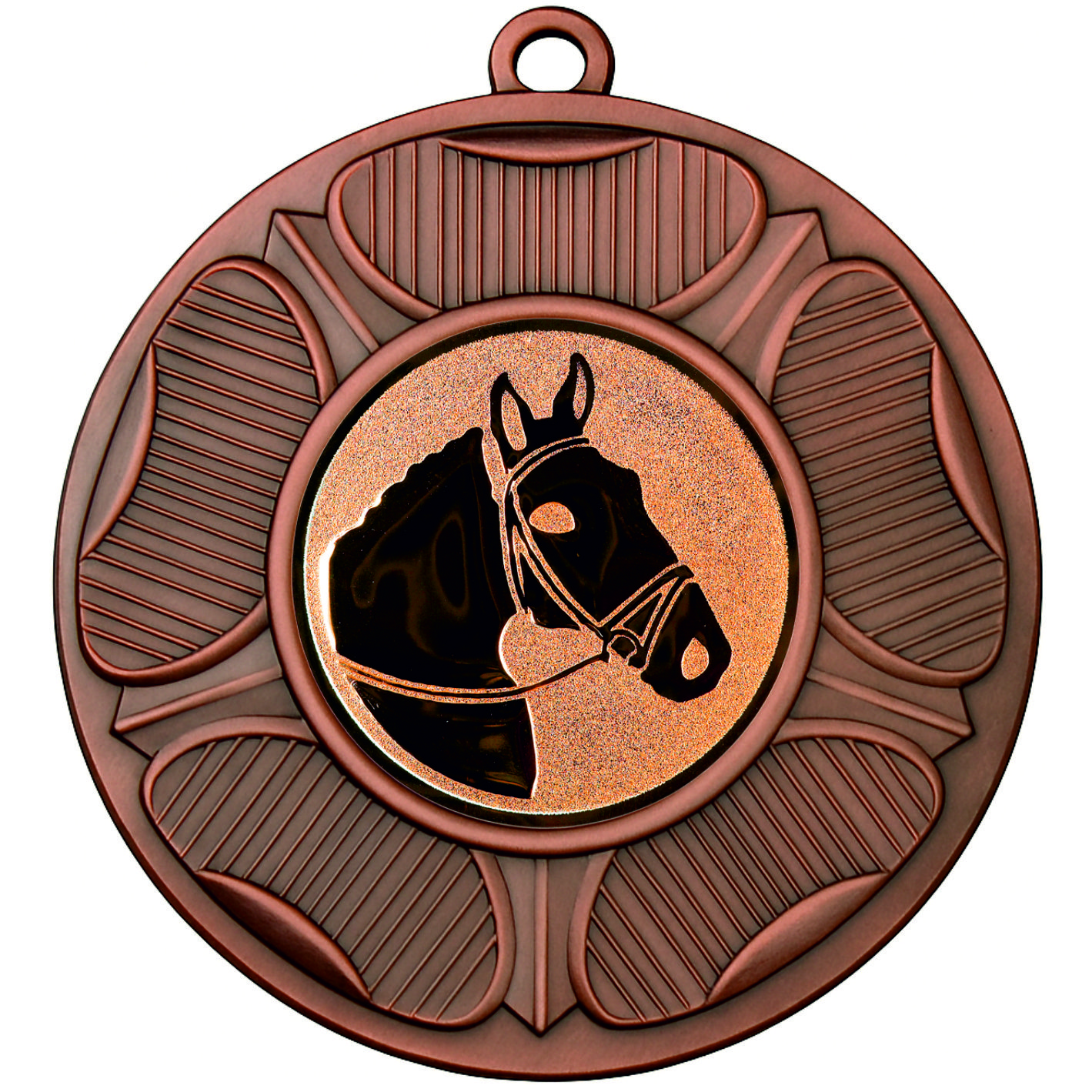 Bronze Tudor Rose Horses Head Medal - FREE Ribbon - BIE.M9458.03 - This 50mm Metal cast Medal includes a free Horses Head logo and free premium quality ribbon.