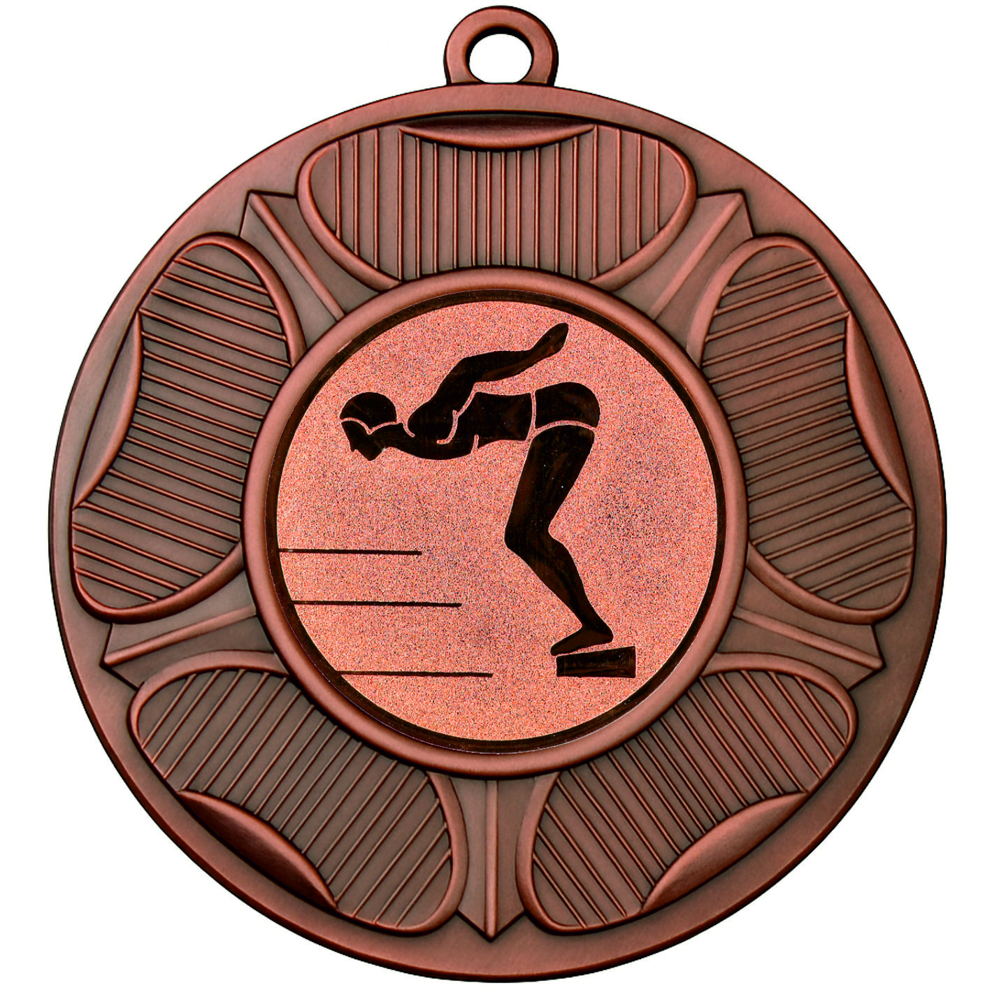 Bronze Tudor Rose Male Swimming Medal-FREE Ribbon-BIE.M9458.03 - This 50mm Metal cast Medal includes a free Male Swimming logo and free premium quality ribbon.