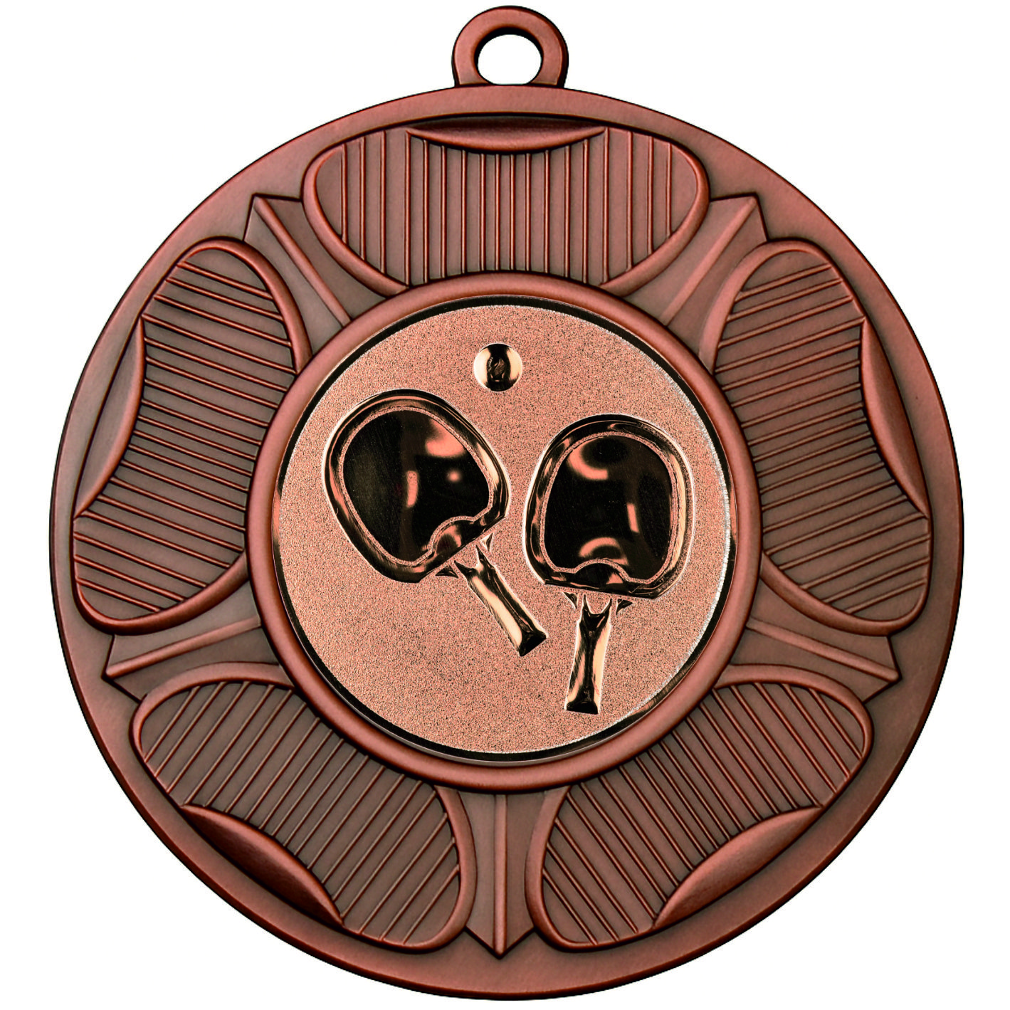 Bronze Tudor Rose Table Tennis Medal-FREE Ribbon-BIE.M9458.03 - This 50mm Metal cast Medal includes a free Table Tennis logo and free premium quality ribbon.