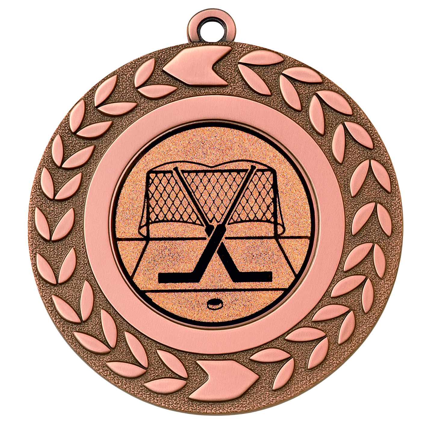Bronze Wreath Ice Hockey Medal - FREE Ribbon - BIE.M9460.03 - This 50mm Metal cast Medal includes a free Ice Hockey logo and free premium quality ribbon.