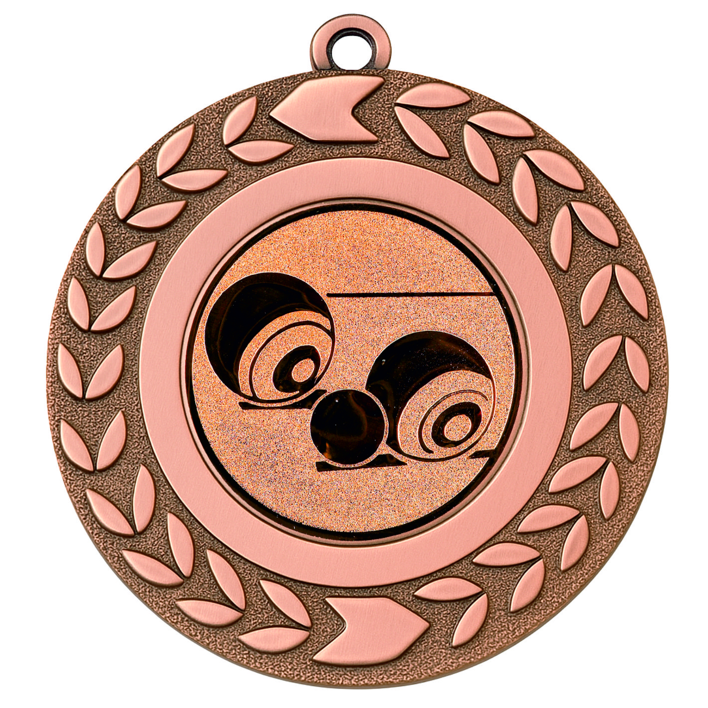 Bronze Wreath Lawn Bowls Medal - FREE Ribbon - BIE.M9460.03 - This 50mm Metal cast Medal includes a free Lawn Bowls logo and free premium quality ribbon.