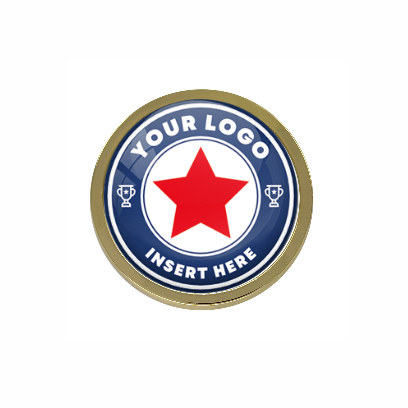 Gold Bespoke Your Logo Round Metal Badge - 19mm. This high quality School round badge is ideal for any School award purpose. A good way to set up a friendly competition on who can come up with the best Badge design with your students on a monthly basis. Comes with a domed resin finish. Packaged and delivered in 2-3 working days. Butterfly Pin on reverse. Minimum Order of 10.