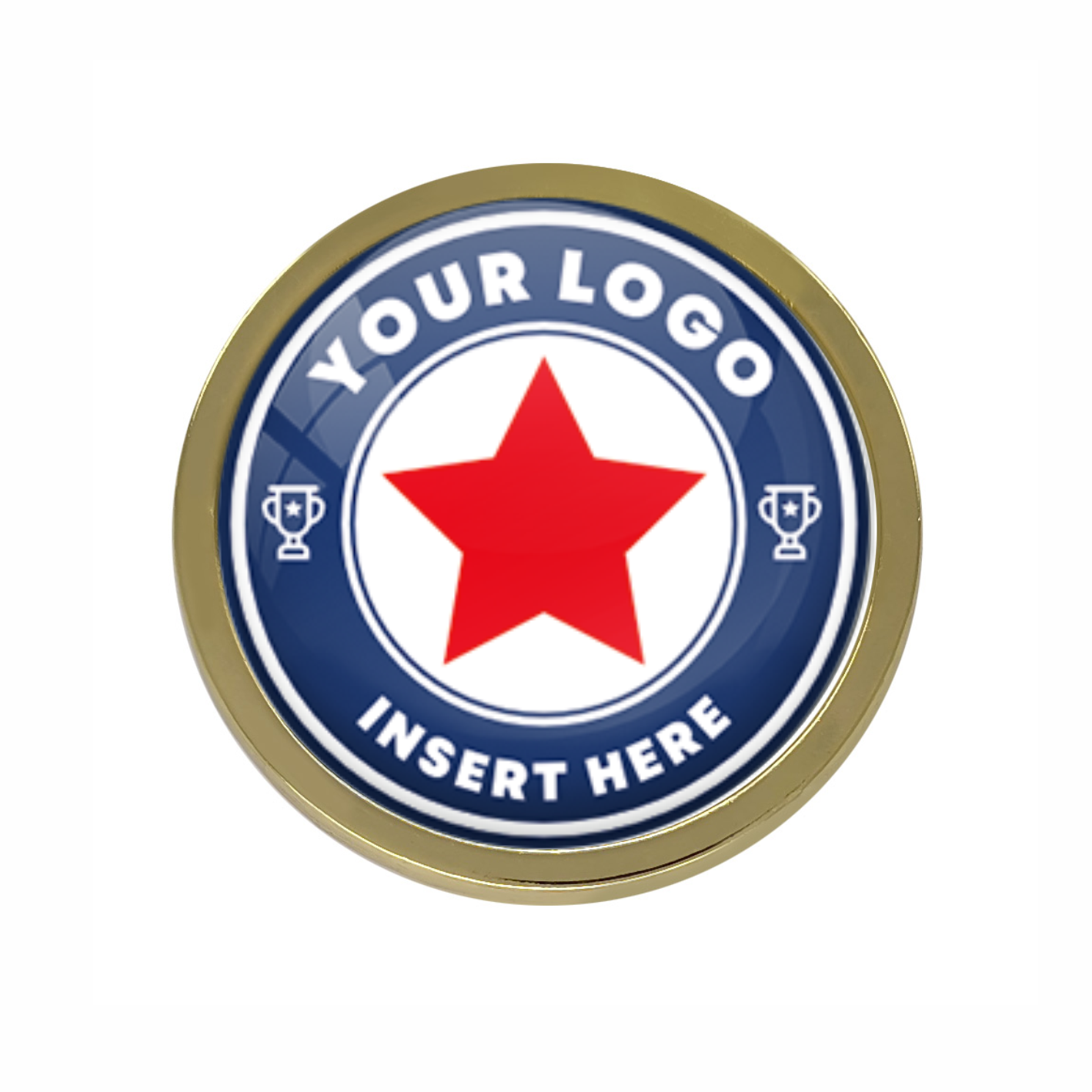 Gold Bespoke Your Logo Round Metal Badge - 28mm. This high quality School round badge is ideal for any School award purpose. A good way to set up a friendly competition on who can come up with the best Badge design with your students on a monthly basis. Comes with a domed resin finish. Packaged and delivered in 2-3 working days. Butterfly Pin on reverse. Minimum Order of 10.