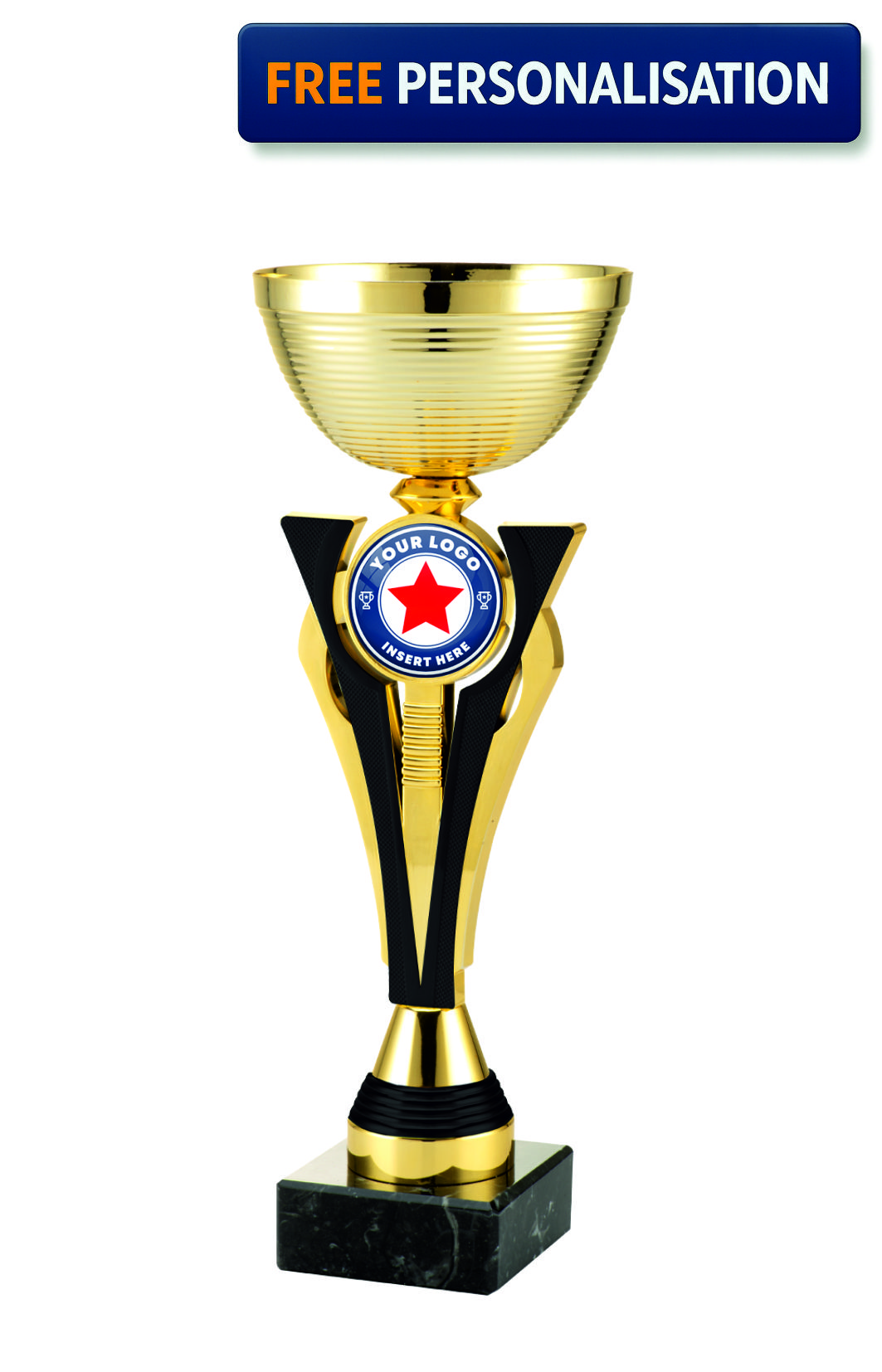 Gold & Black Geometric Cup - ET.491.15. This elegant looking cup has a unique design and is perfect for presenting at any of your upcoming Presentations. Trophy comes complete with a fully personalised engraving plate and fast delivery straight to your door.