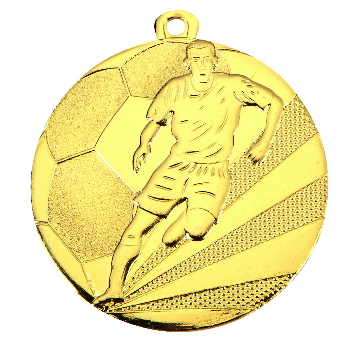 Gold Footballer Football Medal -FREE Ribbon - D112A - This 50mm Metal cast Medal includes a free logo and free premium quality ribbon.