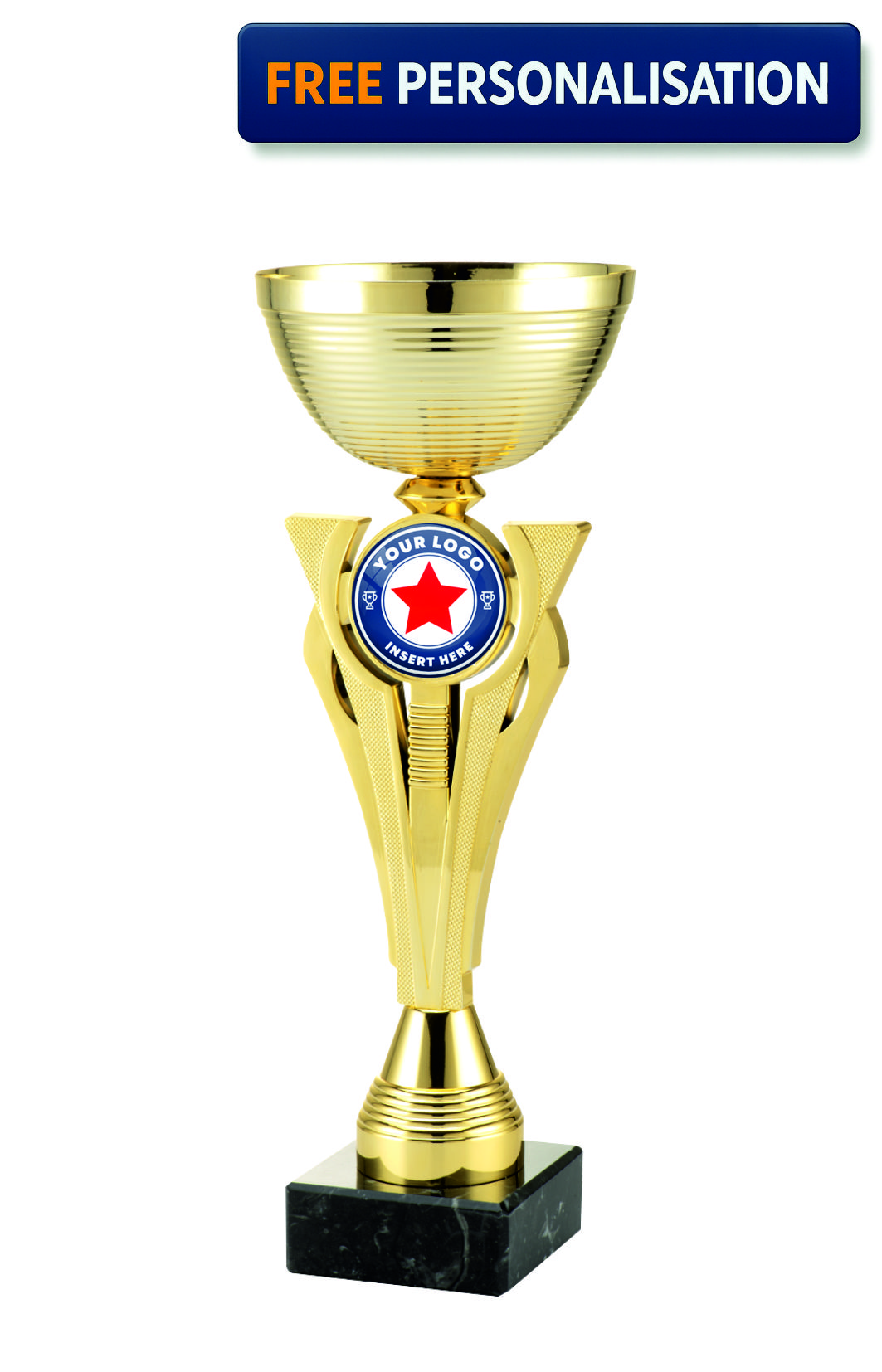 Gold Geometric Cup - ET.491.01. This elegant looking cup has a unique design and is perfect for presenting at any of your upcoming Presentations. Trophy comes complete with a fully personalised engraving plate and fast delivery straight to your door.