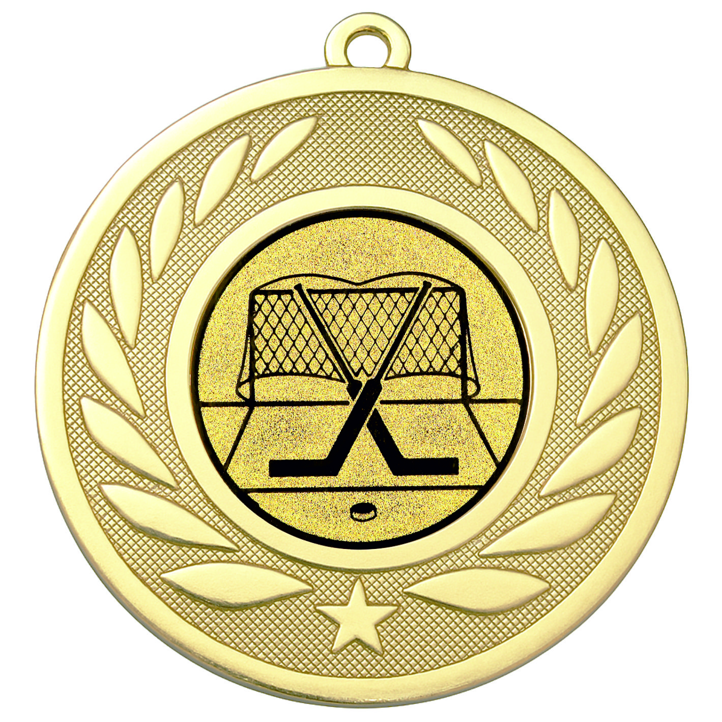 Gold Laurel Ice Hockey Medal - FREE Ribbon - BIE.M9459.01 - This 50mm Metal cast Medal includes a free Ice Hockey logo and free premium quality ribbon.