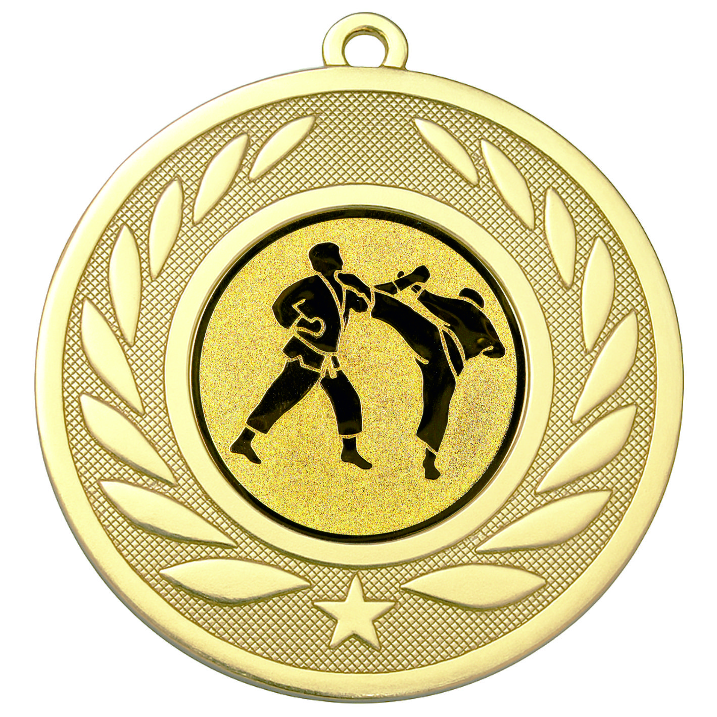 Gold Laurel Karate Medal - FREE Ribbon - BIE.M9459.01 - This 50mm Metal cast Medal includes a free Karate logo and free premium quality ribbon.