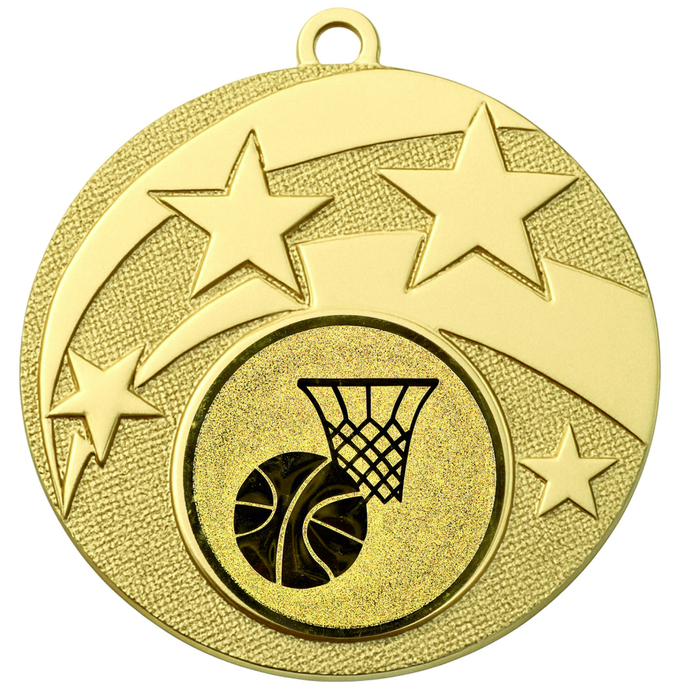 Gold Star Basketball Medal - FREE Ribbon - BIE.M9457.01 - This 50mm Metal cast Medal includes a free Basketball logo and free premium quality ribbon.