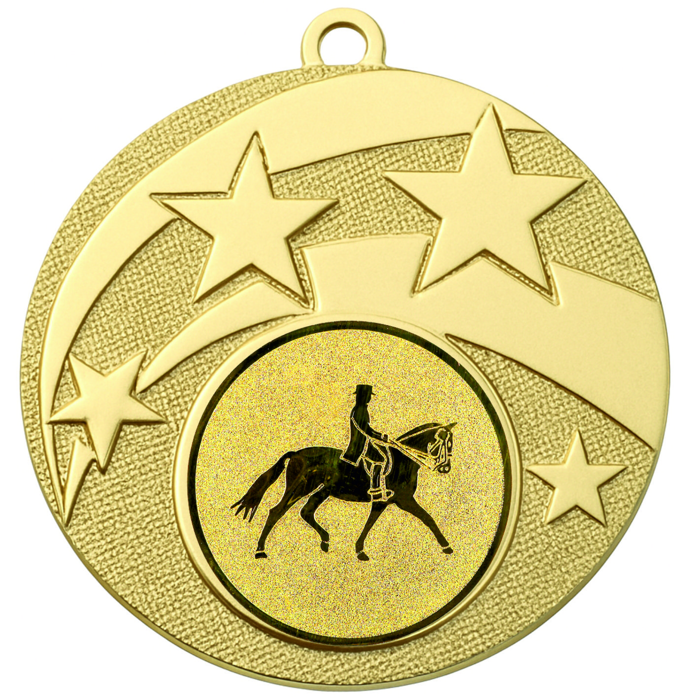 Gold Star Dressage Medal - FREE Ribbon - BIE.M9457.01 - This 50mm Metal cast Medal includes a free Dressage logo and free premium quality ribbon.