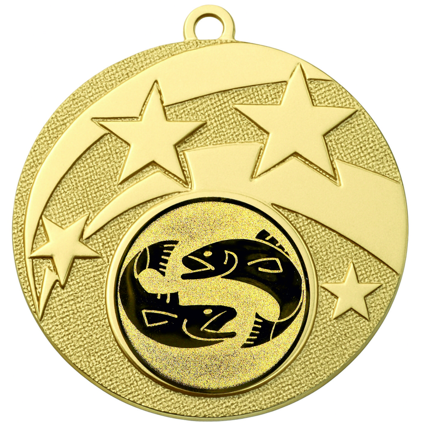 Gold Star FishMedal - FREE Ribbon - BIE.M9457.01 - This 50mm Metal cast Medal includes a free Fish logo and free premium quality ribbon.