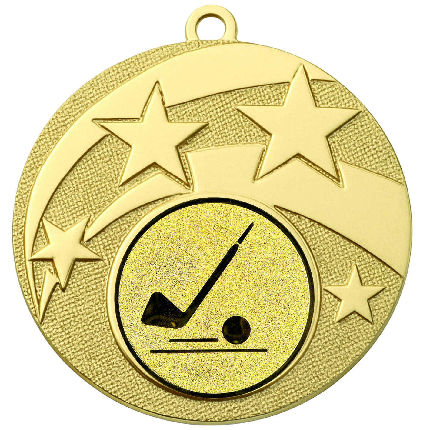 Gold Star Golf Putter Medal - FREE Ribbon - BIE.M9457.01 - This 50mm Metal cast Medal includes a free Golf Putter logo and free premium quality ribbon.
