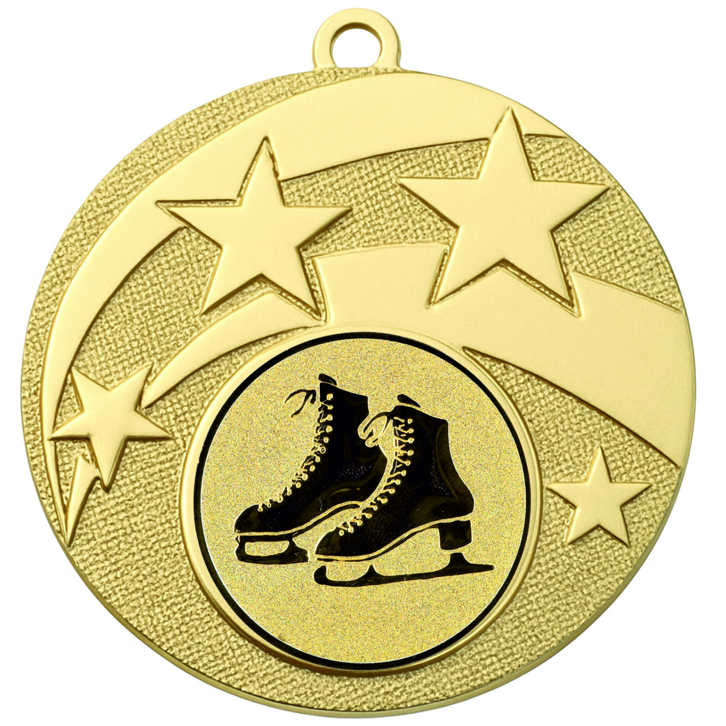 Gold Star Ice Skating Medal -FREE Ribbon -BIE.M9457.01 - This 50mm Metal cast Medal includes a free Ice Skating logo and free premium quality ribbon.