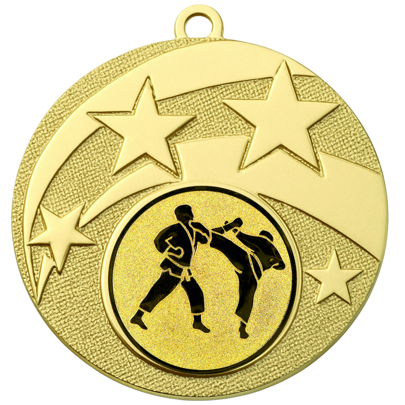 Gold Star Karate Medal -FREE Ribbon -BIE.M9457.01 - This 50mm Metal cast Medal includes a free Karate logo and free premium quality ribbon.