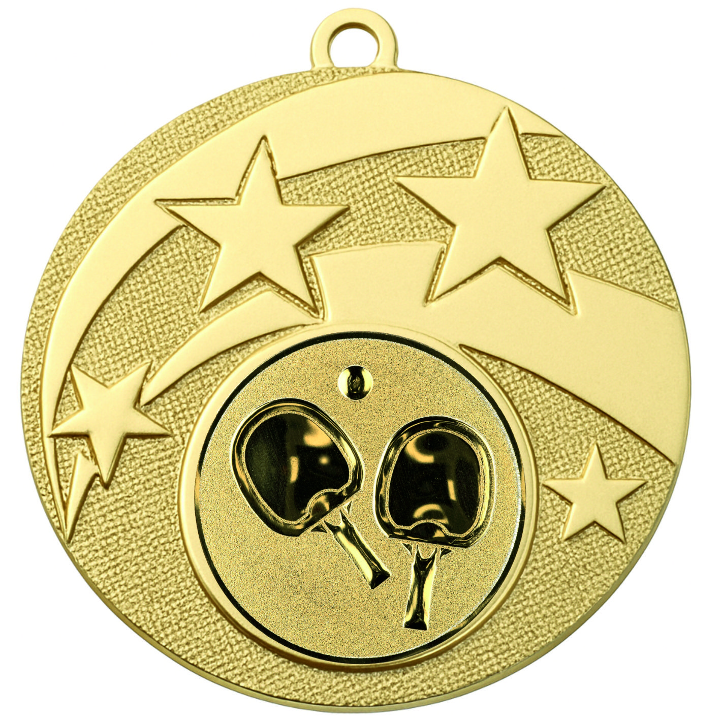 Gold Star Table Tennis Medal -FREE Ribbon -BIE.M9457.01 - This 50mm Metal cast Medal includes a free Table Tennis logo and free premium quality ribbon.