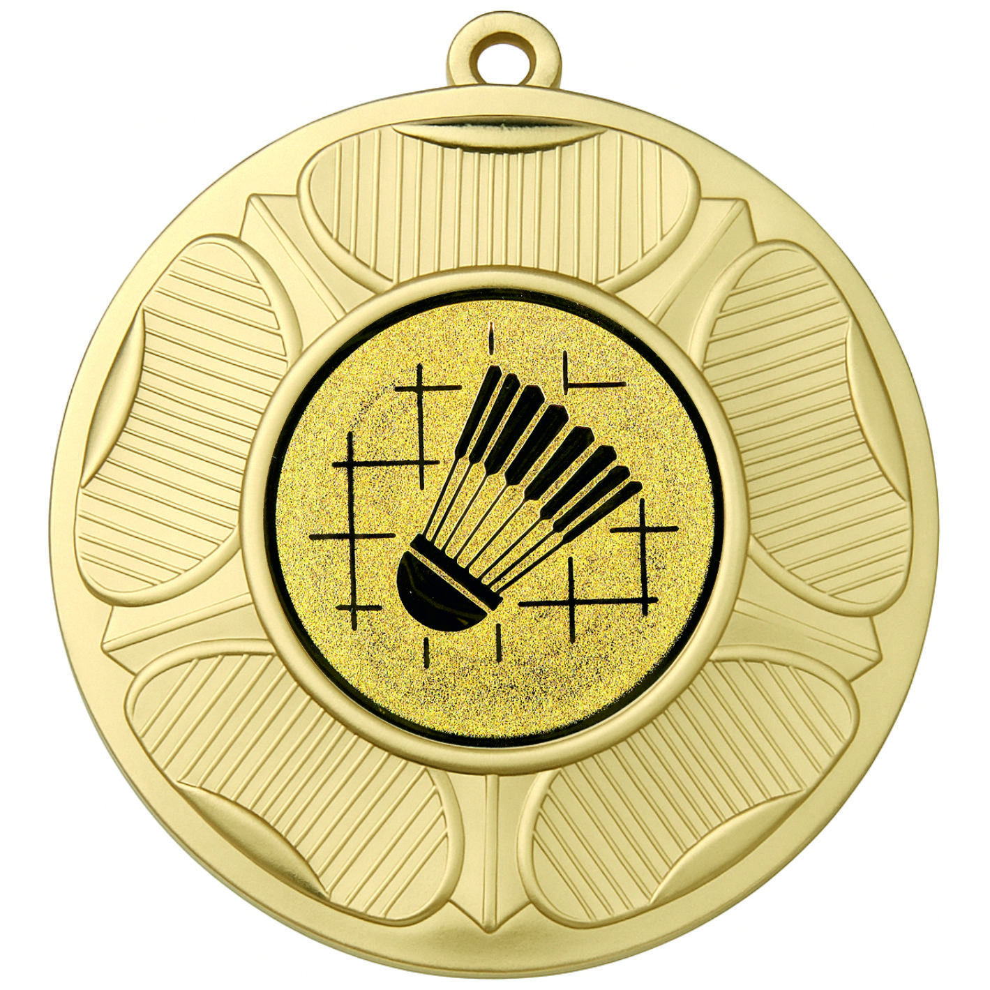 Gold Tudor Rose Badminton Medal - FREE Ribbon - BIE.M9458.01 - This 50mm Metal cast Medal includes a free Badminton logo and free premium quality ribbon.