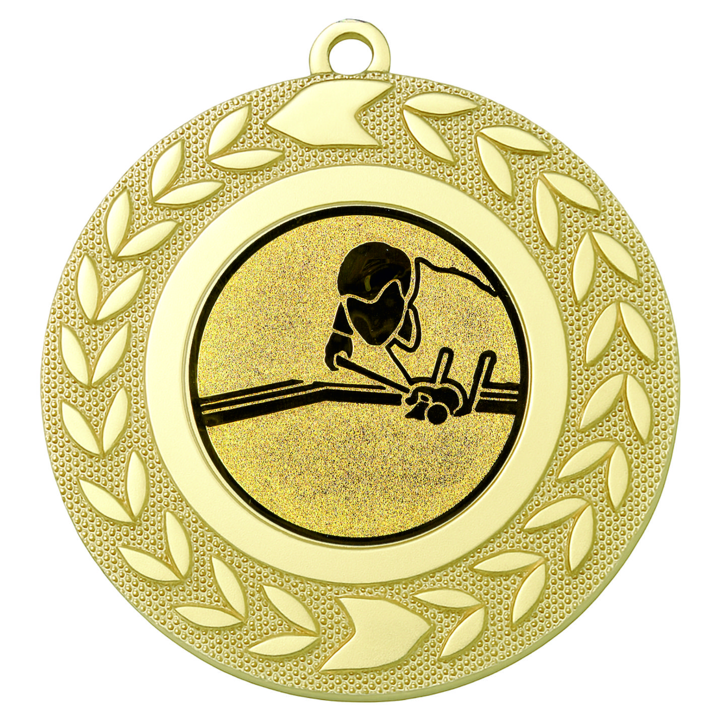 Gold Wreath Billiards Medal - FREE Ribbon - BIE.M9460.01 - This 50mm Metal cast Medal includes a free Billiards logo and free premium quality ribbon.