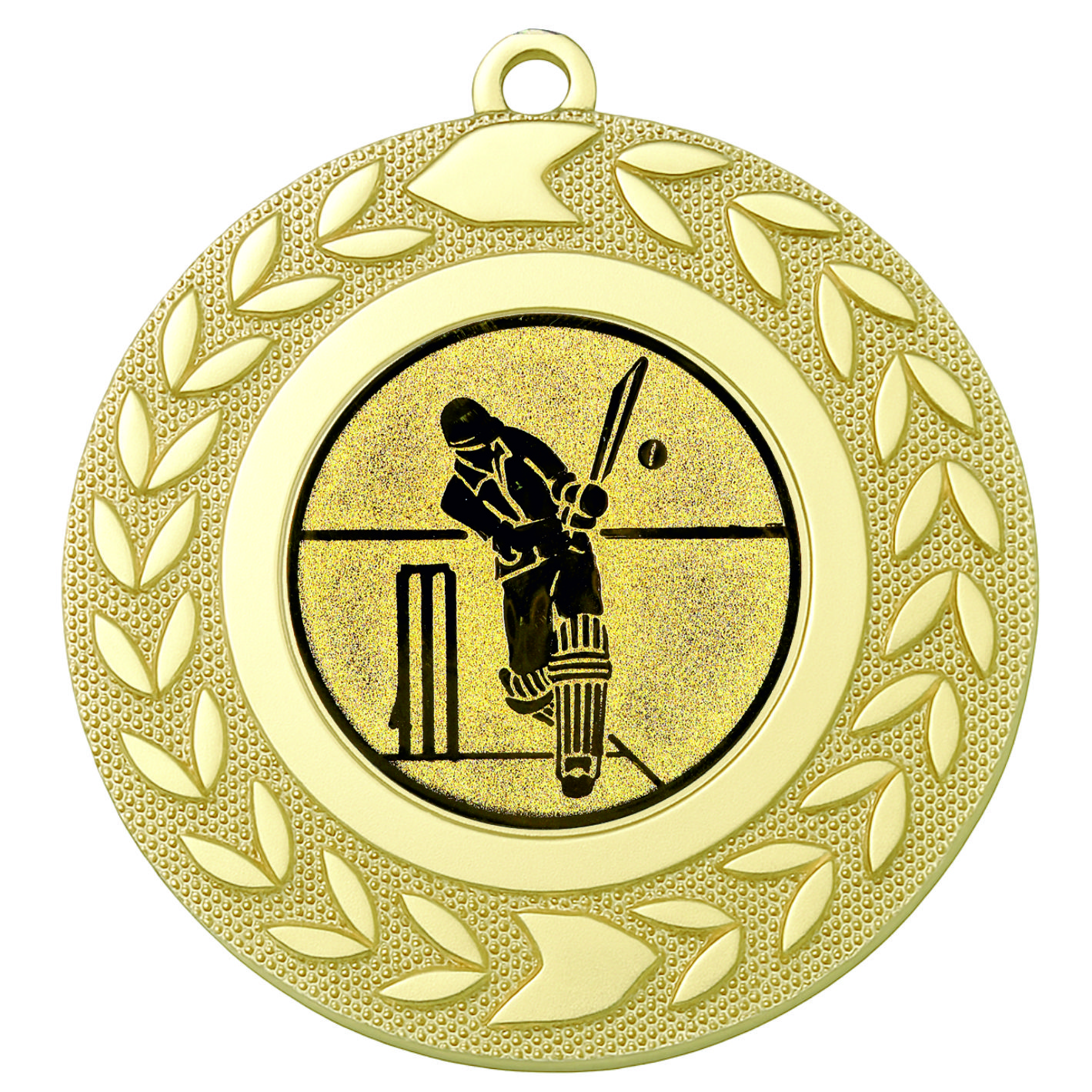 Gold Wreath Cricket Medal - FREE Ribbon - BIE.M9460.01 - This 50mm Metal cast Medal includes a free Cricket logo and free premium quality ribbon.