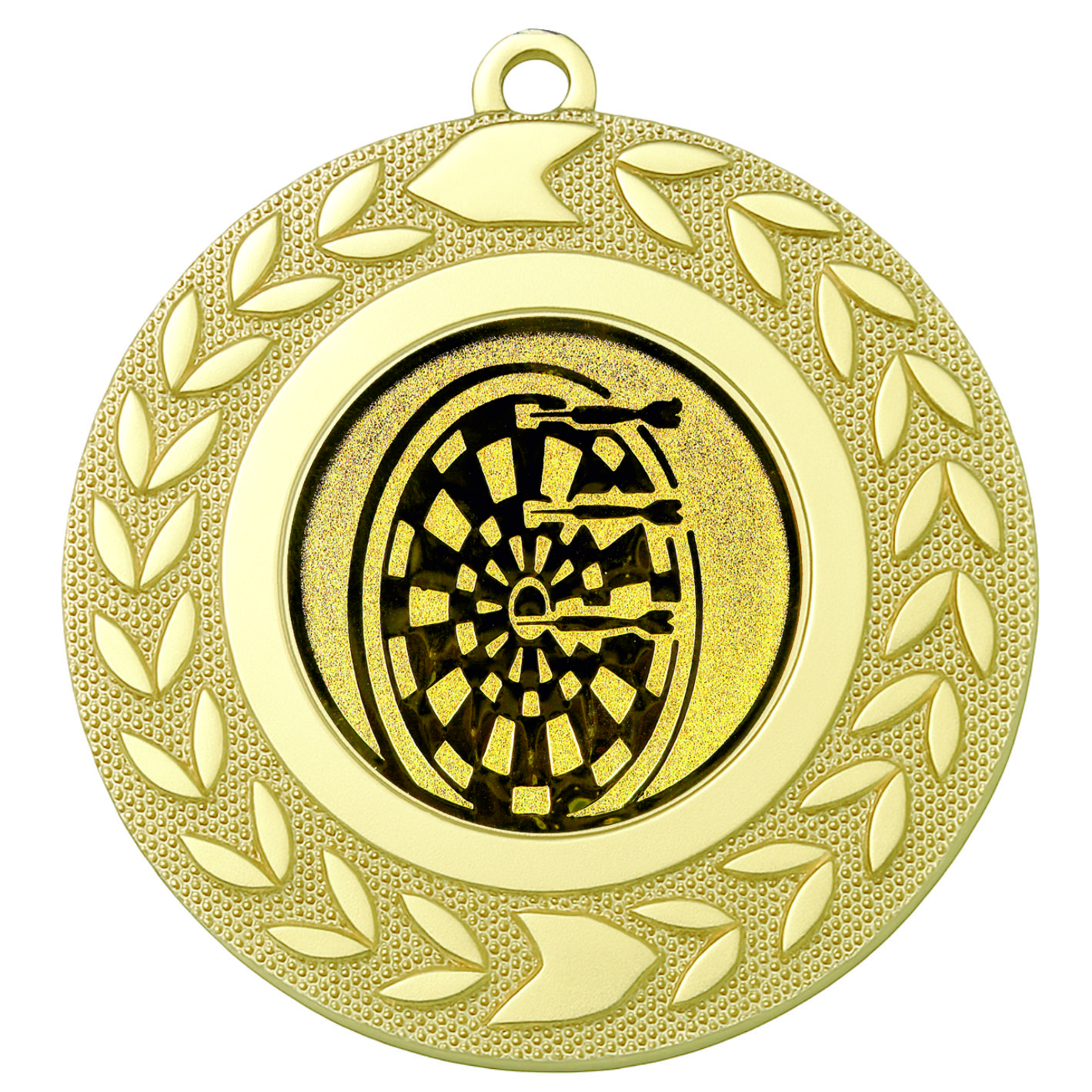 Gold Wreath Darts Medal - FREE Ribbon - BIE.M9460.01 - This 50mm Metal cast Medal includes a free Darts logo and free premium quality ribbon.