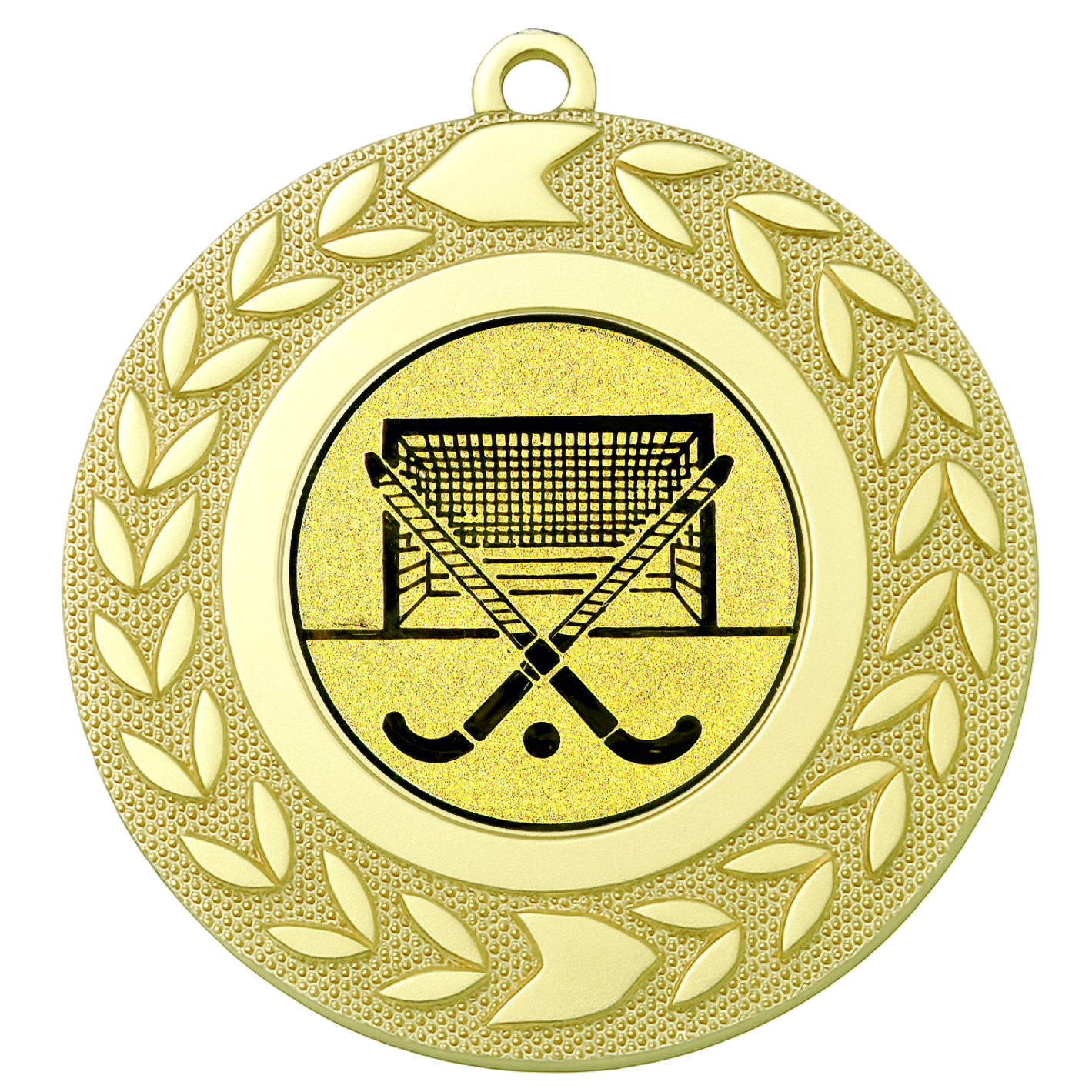 Gold Wreath Hockey Medal - FREE Ribbon - BIE.M9460.01 - This 50mm Metal cast Medal includes a free Hockey logo and free premium quality ribbon.