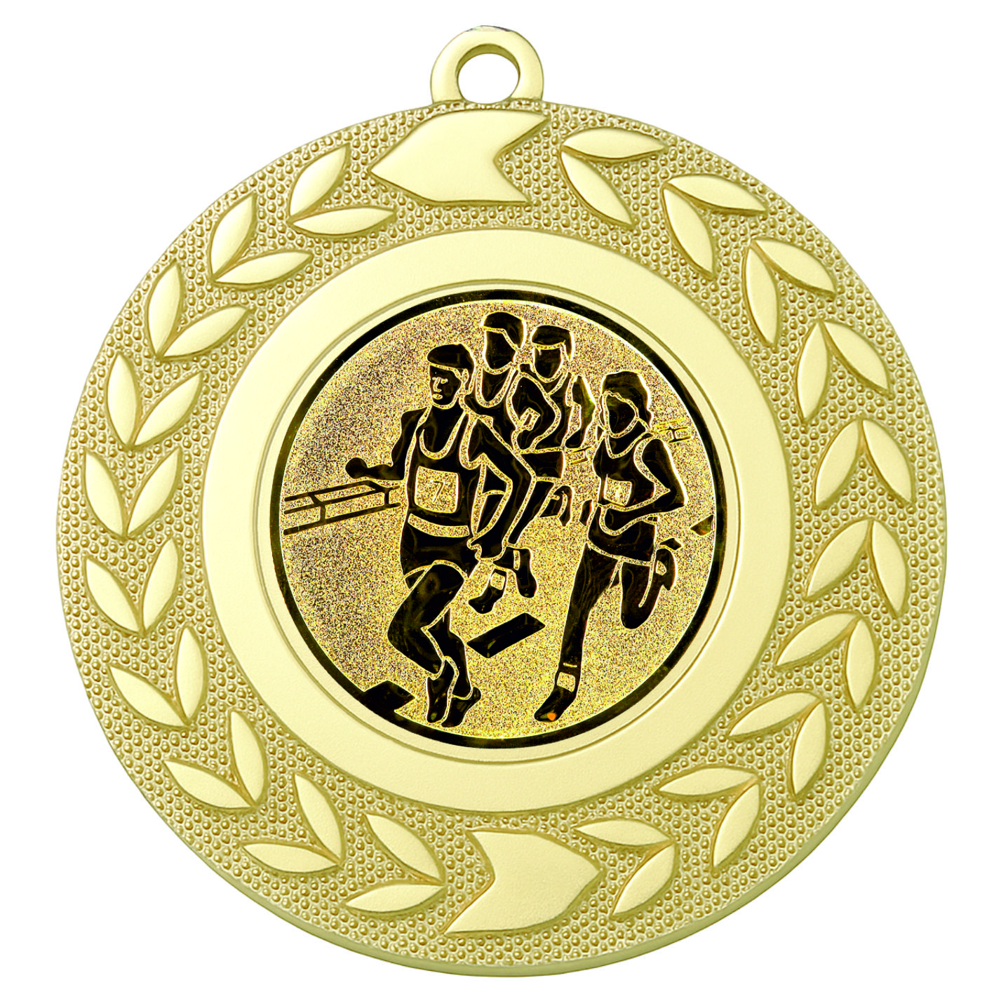 Gold Wreath Marathon Medal - FREE Ribbon - BIE.M9460.01 - This 50mm Metal cast Medal includes a free Sprinting logo and free premium quality ribbon.