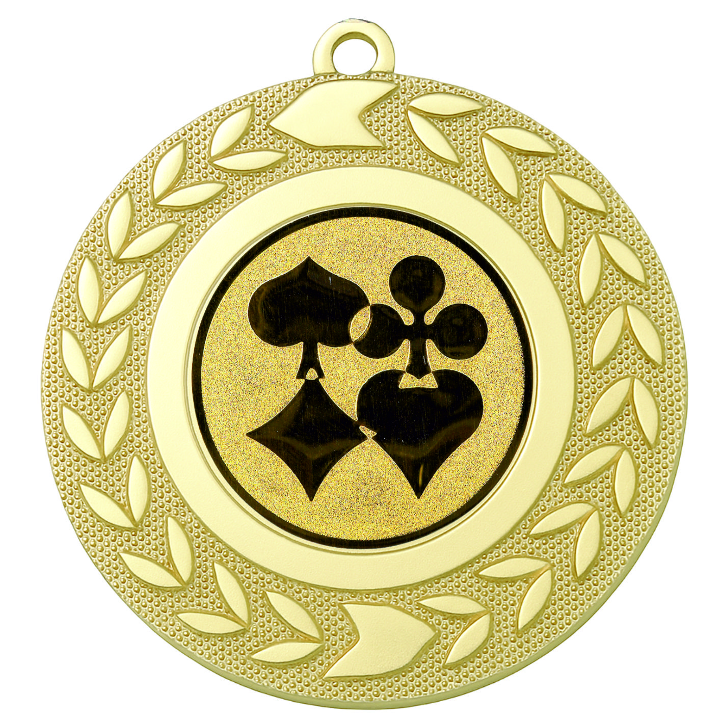 Gold Wreath Playing Card Medal - FREE Ribbon - BIE.M9460.01 - This 50mm Metal cast Medal includes a free Playing Card logo and free premium quality ribbon.