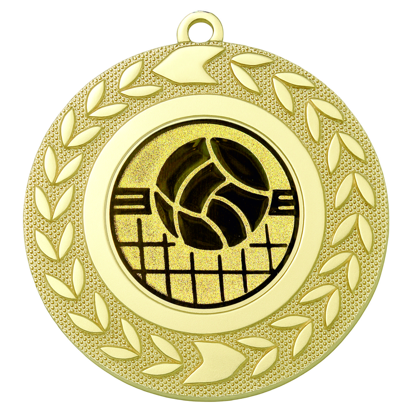 Gold Wreath Volleyball Medal - FREE Ribbon - BIE.M9460.01 - This 50mm Metal cast Medal includes a free Volleyball logo and free premium quality ribbon.