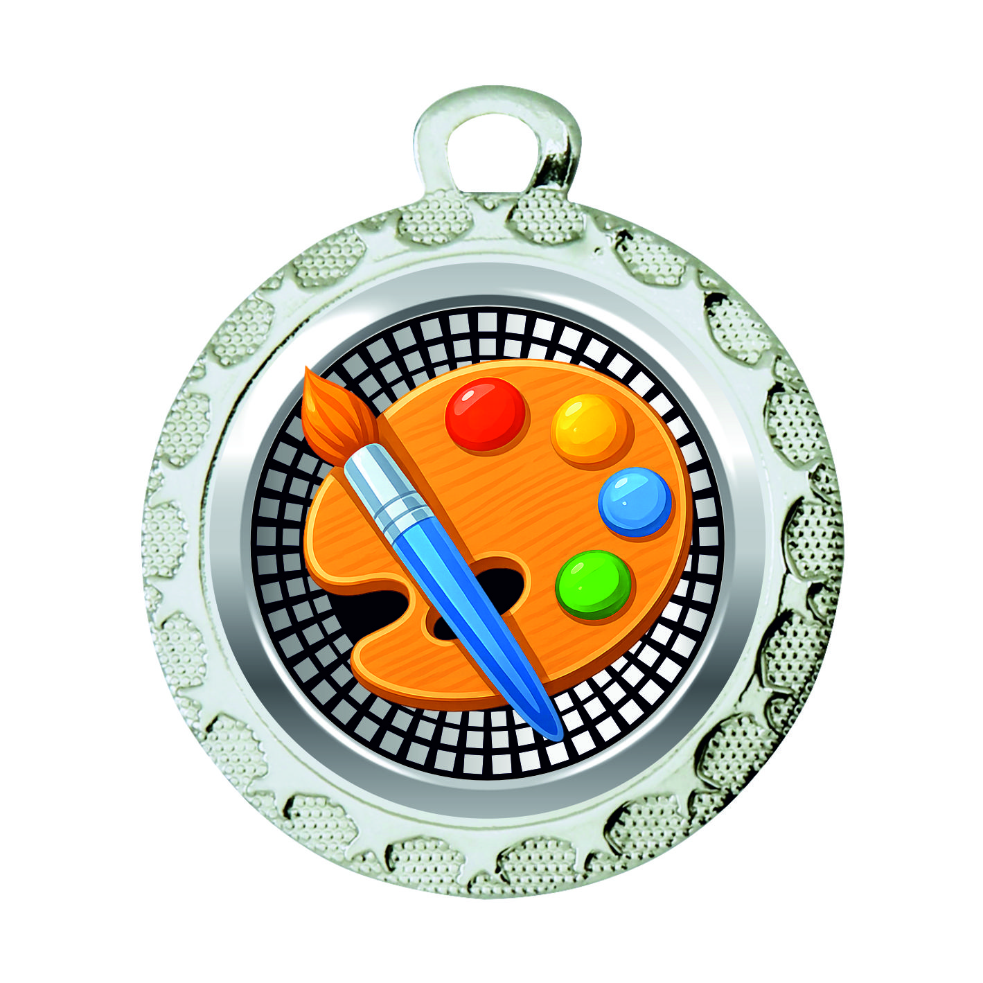 Silver 32mm Art Subject Medal FREE Ribbon - DI3201.02. This 32mm Metal cast Medal includes a free colour logo and free premium quality ribbon.