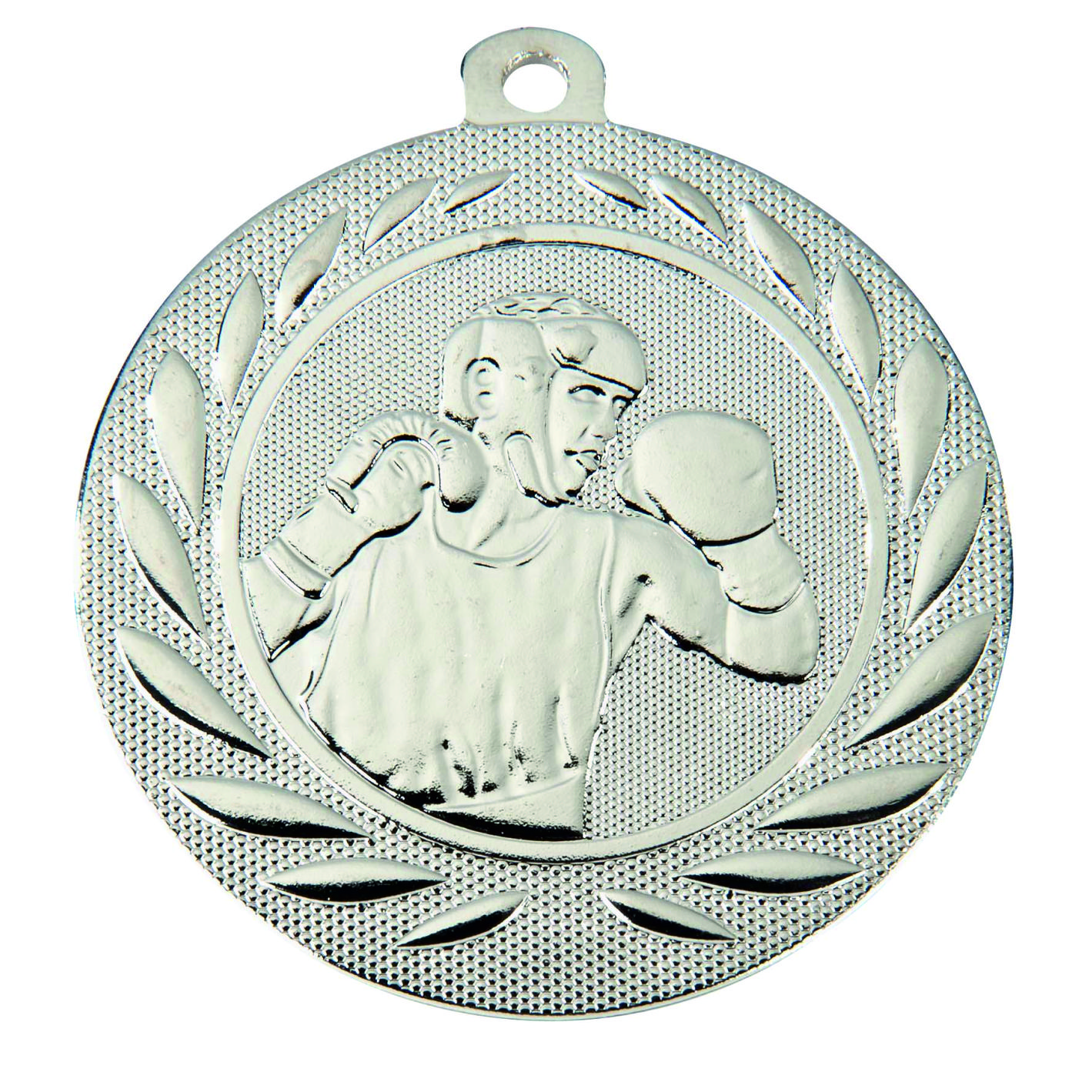 Silver Boxing 50mm Medal DI5000.P.02. This stand out, metal cast medal comes complete with ribbon with a choice of 40 colours.