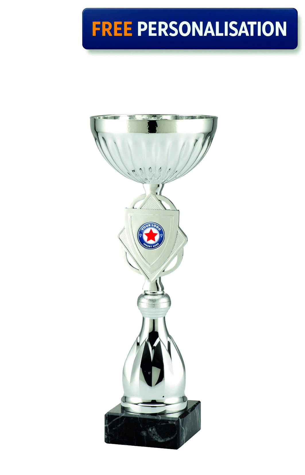 Silver Diamond Shield Cup- ET.511.02. This elegant looking cup has a unique design and is perfect for presenting at any of your upcoming Presentations. Trophy comes complete with a fully personalised engraving plate and fast delivery straight to your door.
