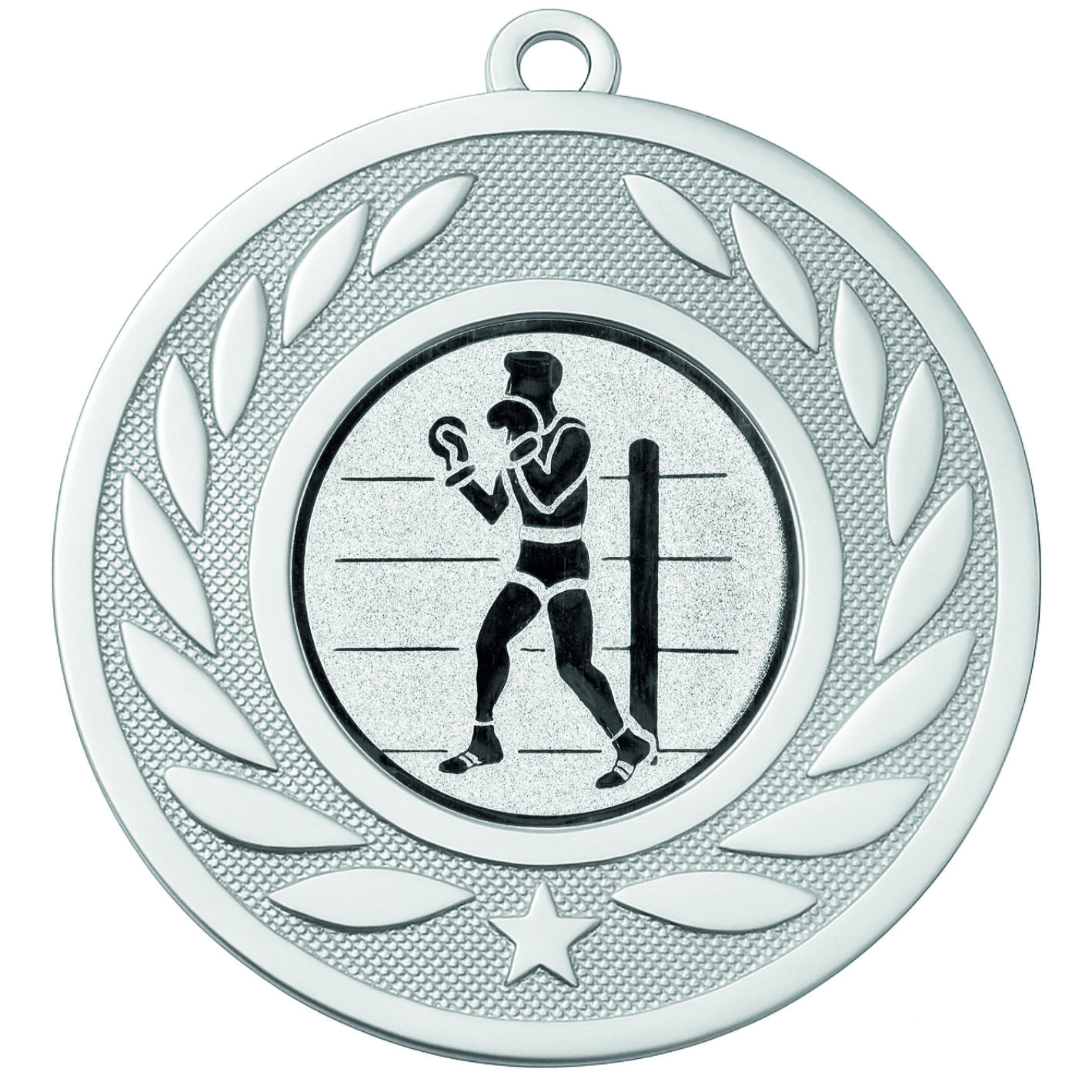 Silver Laurel Boxing Medal - FREE Ribbon - BIE.M9459.02 - This 50mm Metal cast Medal includes a free Boxing logo and free premium quality ribbon.
