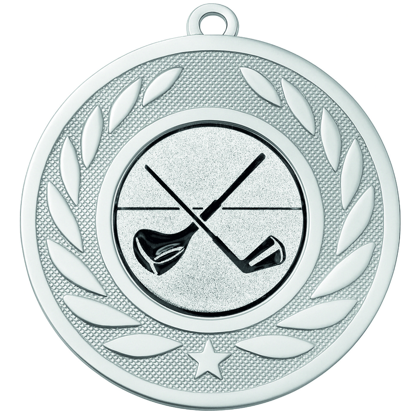 Silver Laurel Golf Clubs Medal - FREE Ribbon - BIE.M9459.02 - This 50mm Metal cast Medal includes a free Golf Clubs logo and free premium quality ribbon.