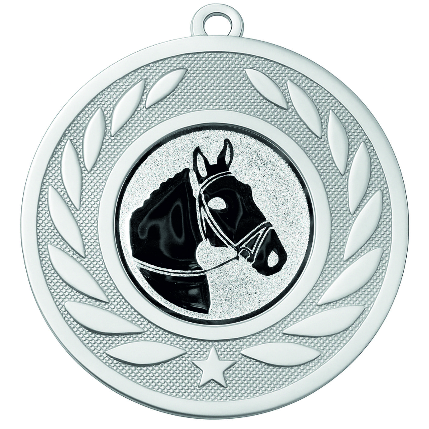 Silver Laurel Horses Head Medal - FREE Ribbon - BIE.M9459.02 - This 50mm Metal cast Medal includes a free Horses Head logo and free premium quality ribbon.